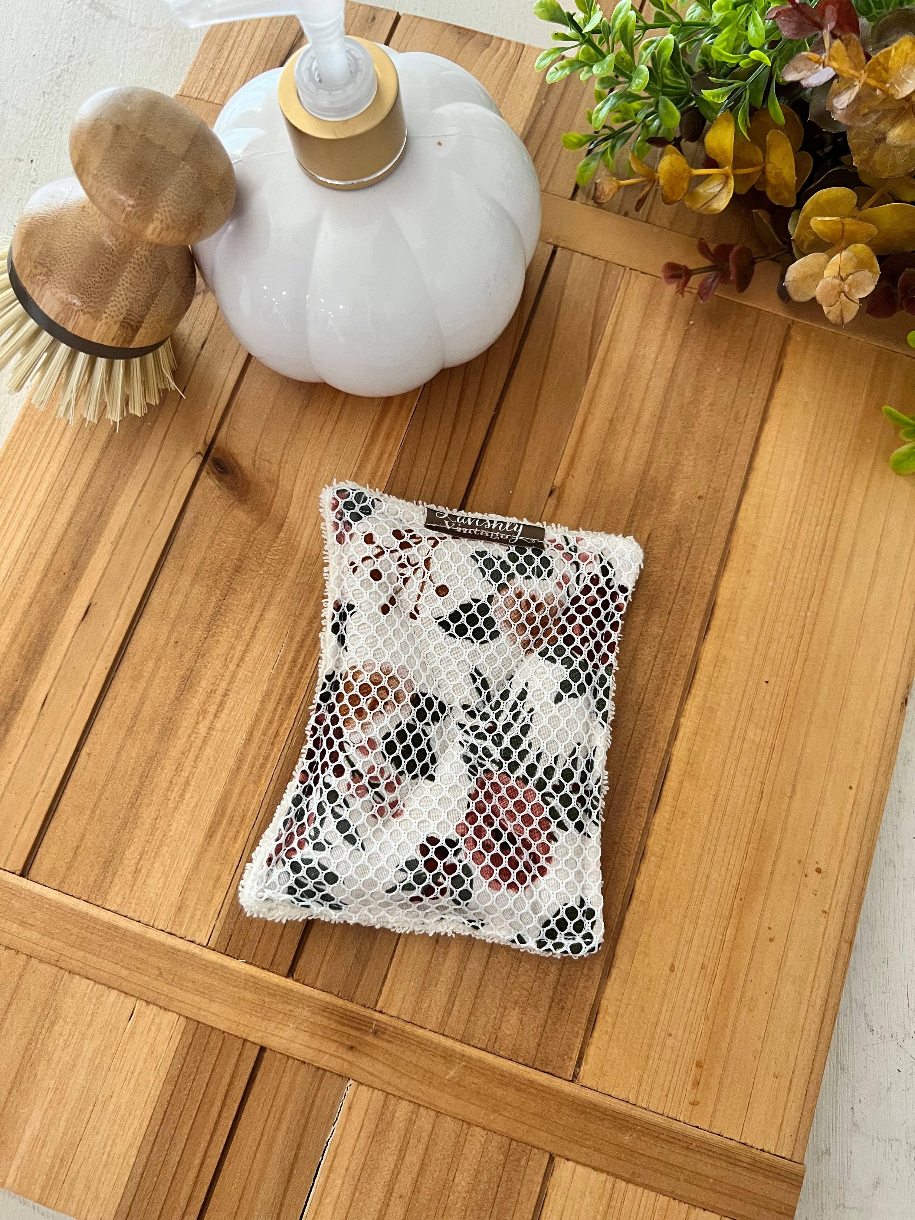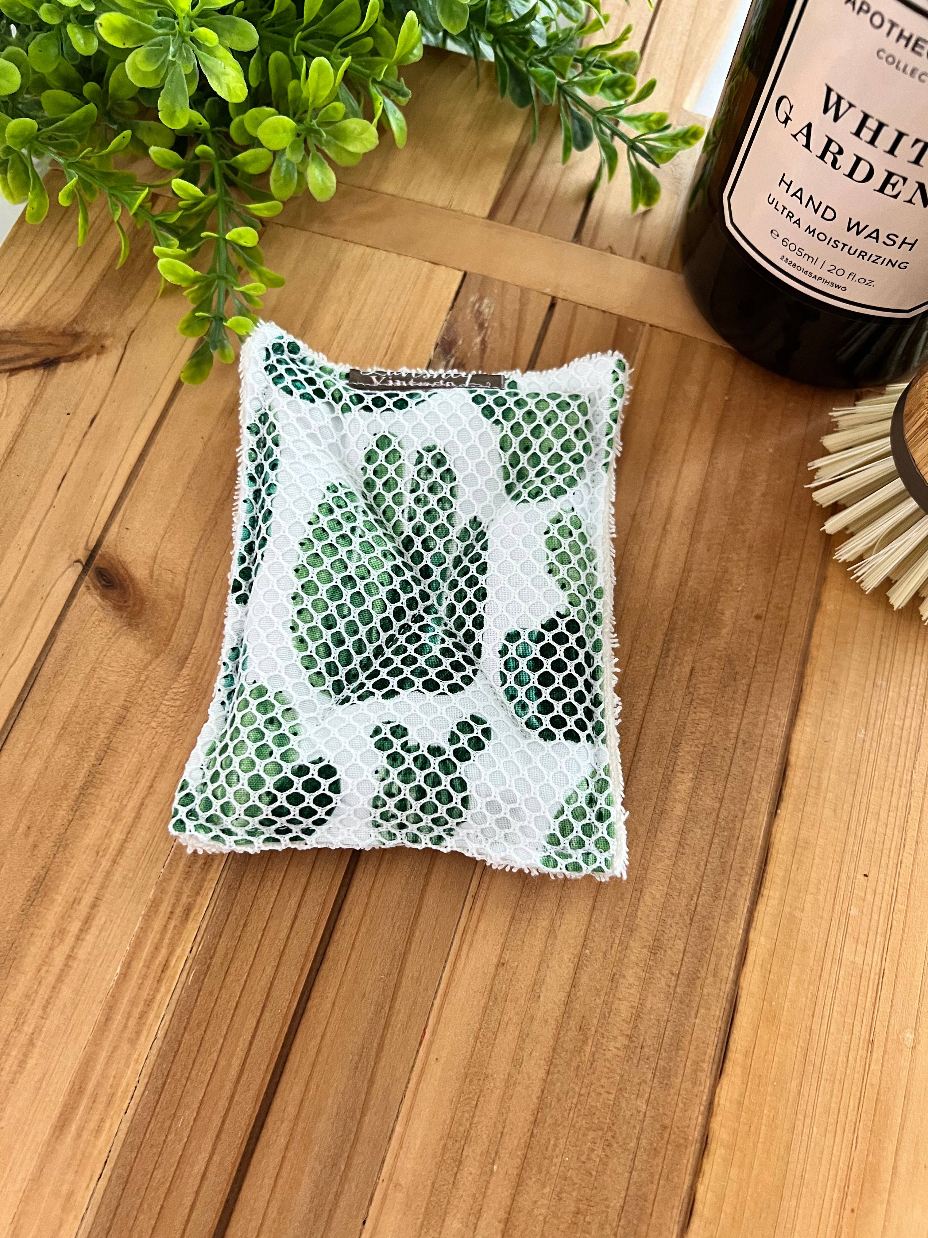 Håndlavet, vaskbar, holdbar svamp, der kan bruges og vaskes igen og igen! UnSponges er håndlavet med materialer af høj kvalitet i søde mønstre. Lavet af 100% frotté for høj absorberingsevne og blød vaskeflade, tyndt lag af økologisk genanvendt skum til at absorbere og skabe skum, bomuldstryk for absorberingsevne og farve, og nettopper til skånsom skrubning! Cirka 5,5"x 4" passer godt i hånden og i skåle og kopper med lethed. Vær forsigtig med knive og skarpe genstande, der kan skære svampen. Maskinvask i vaskemiddel, tør på lav varme eller lufttør. Mønster kan variere fra det viste foto.
