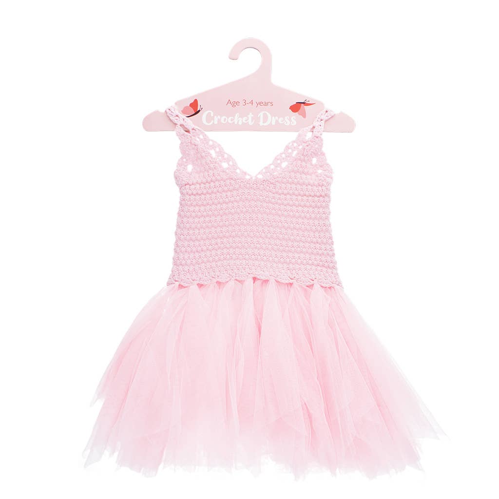 Hæklet bomuldskjole med flæsedetaljer. Foret i bomuldsvoile. Smuk sommerkjole
