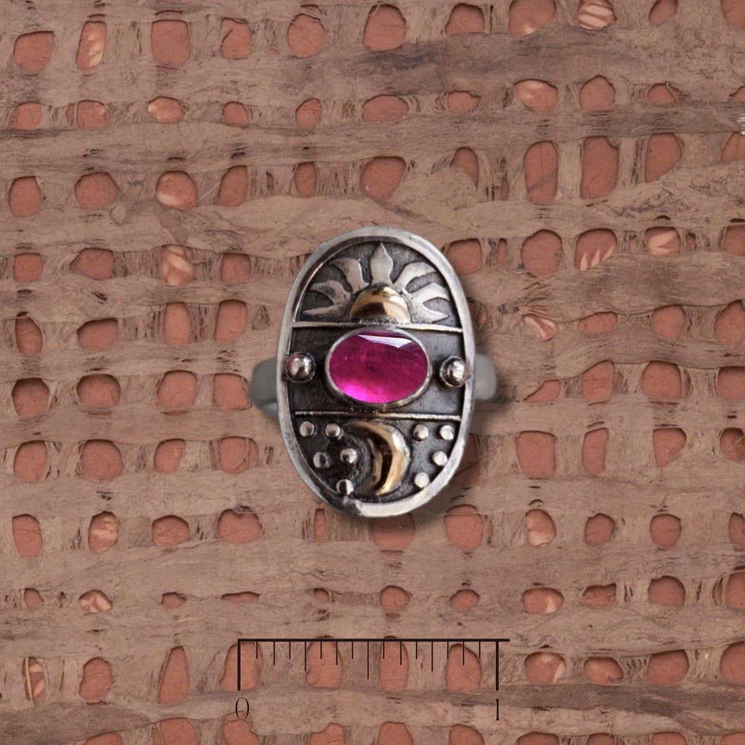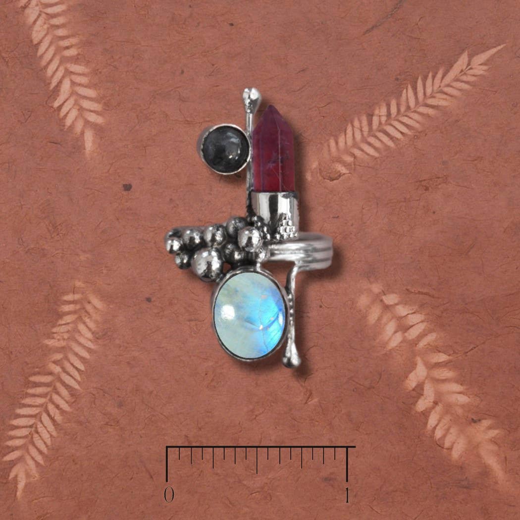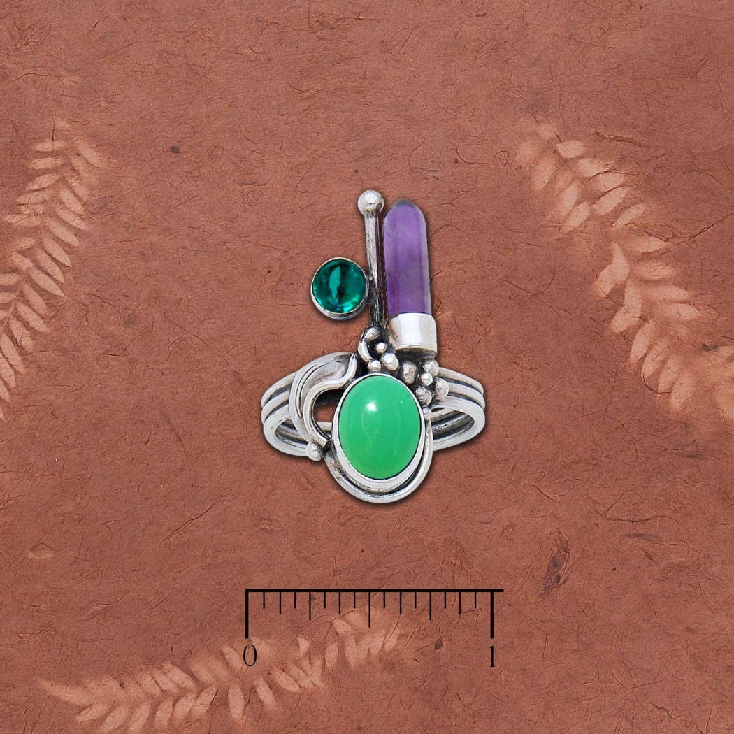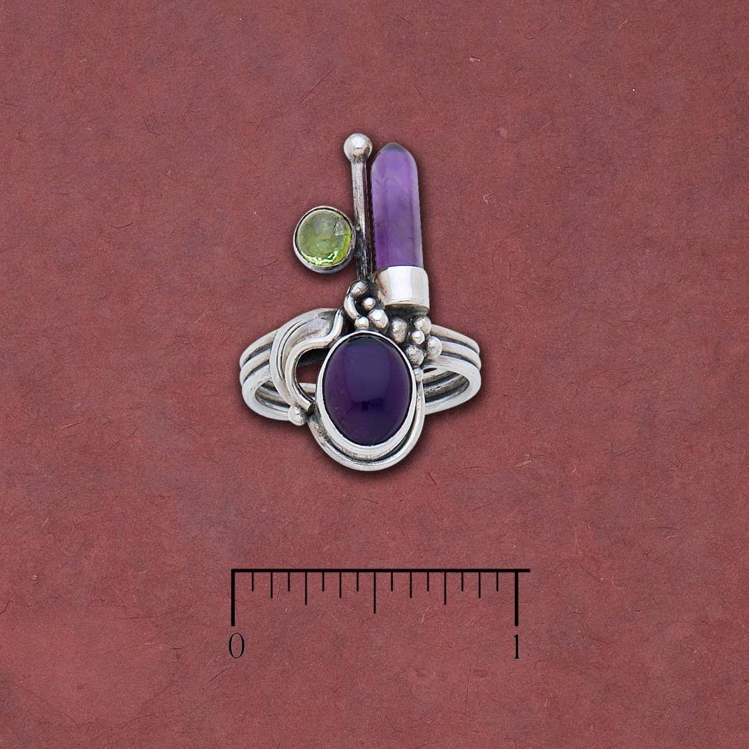 Ametyst Crystal Point, Oval Ametyst og Peridot Ring