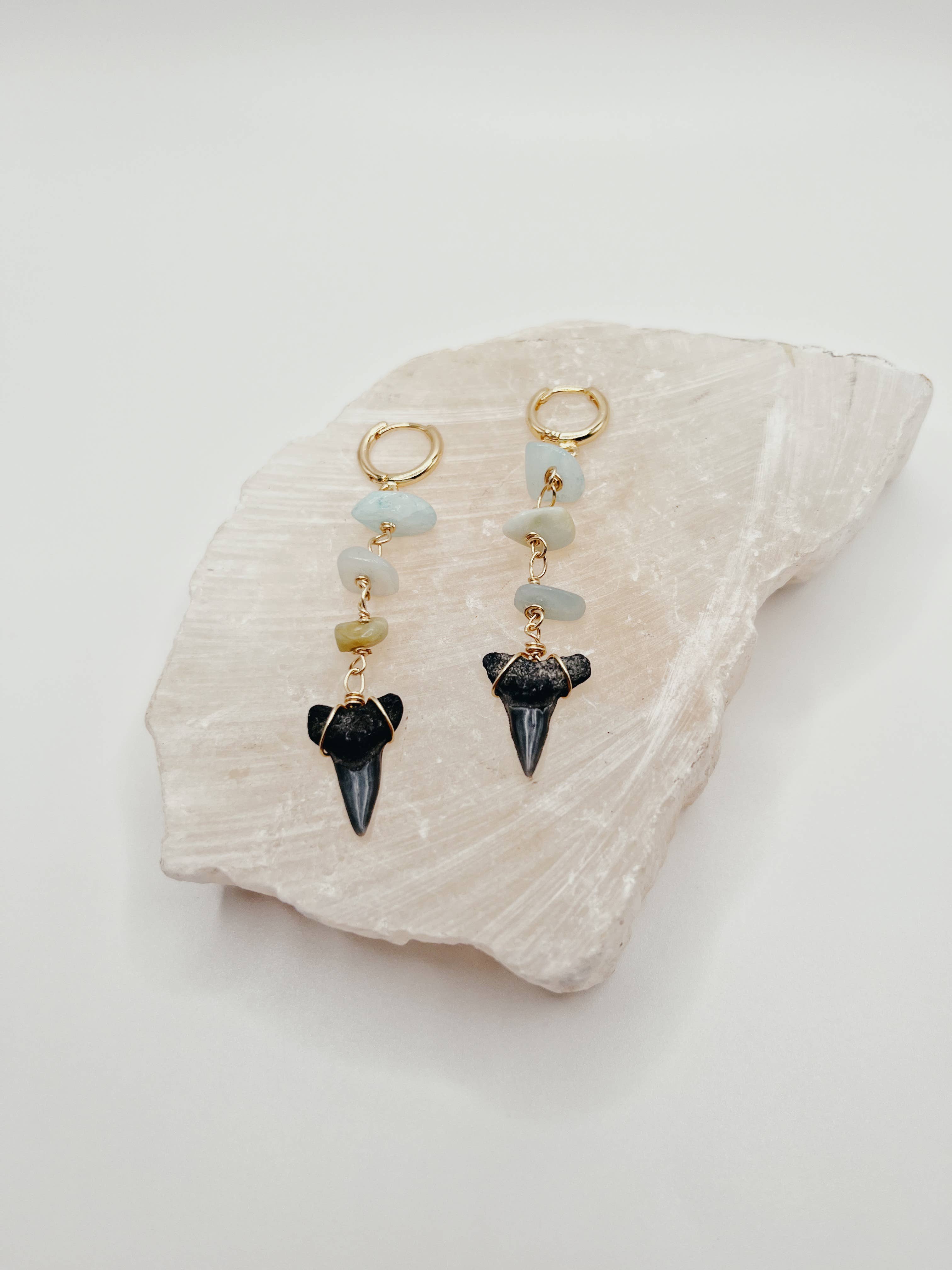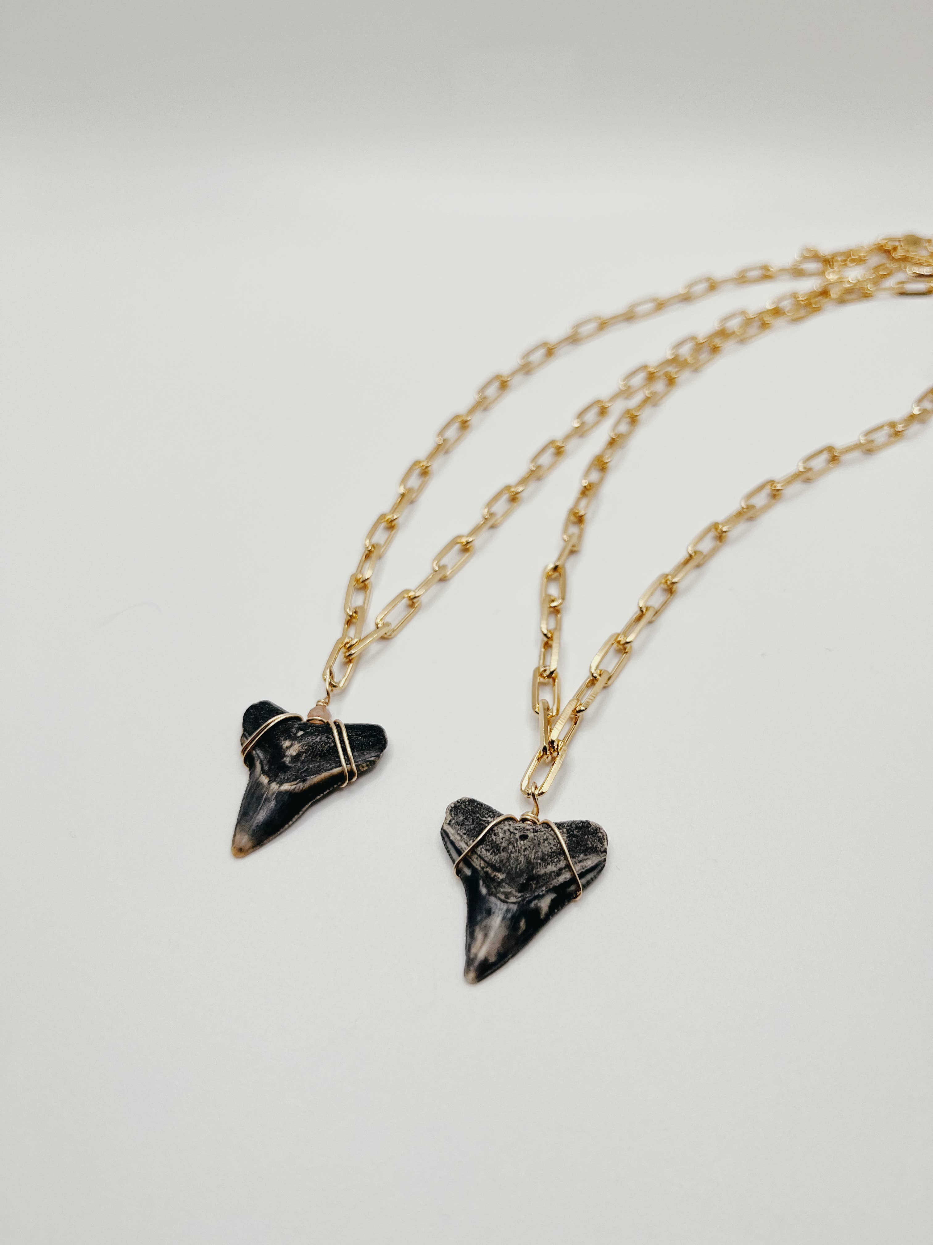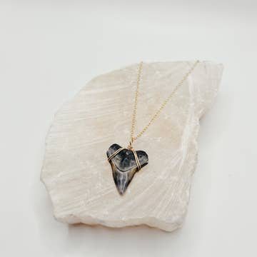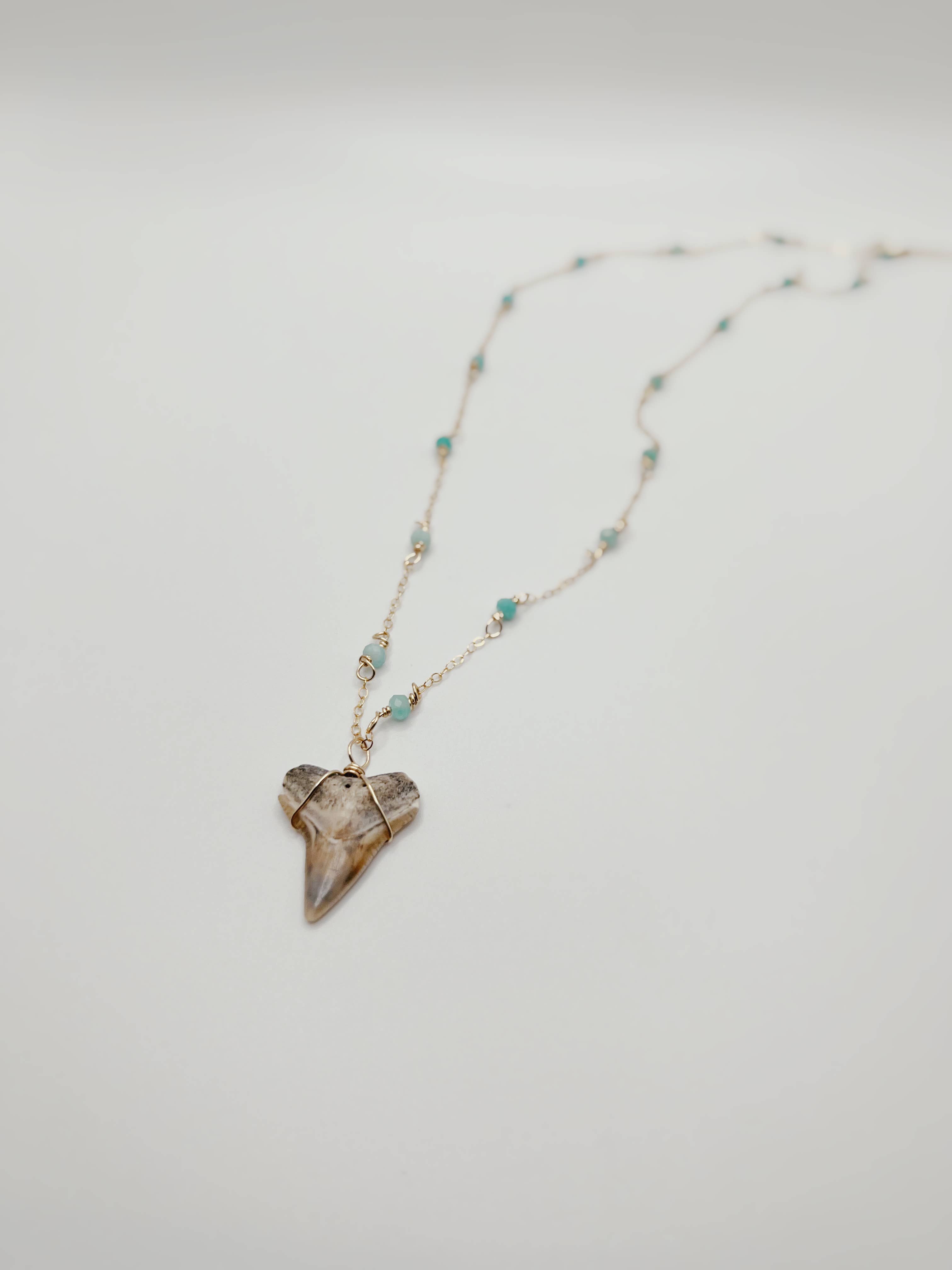 Sterling sølv ædelsten kæde med haj tand vedhæng. Alle haj tænder blev fundet bæredygtigt på Florida strande. Hver tand blev naturligt udgydt i hajens levetid og er unik i form og størrelse. Farver vil variere afhængigt af den tid, tænderne blev begravet, og den type sediment, der var til stede under fossilisering. 16“ med 2 „extender.