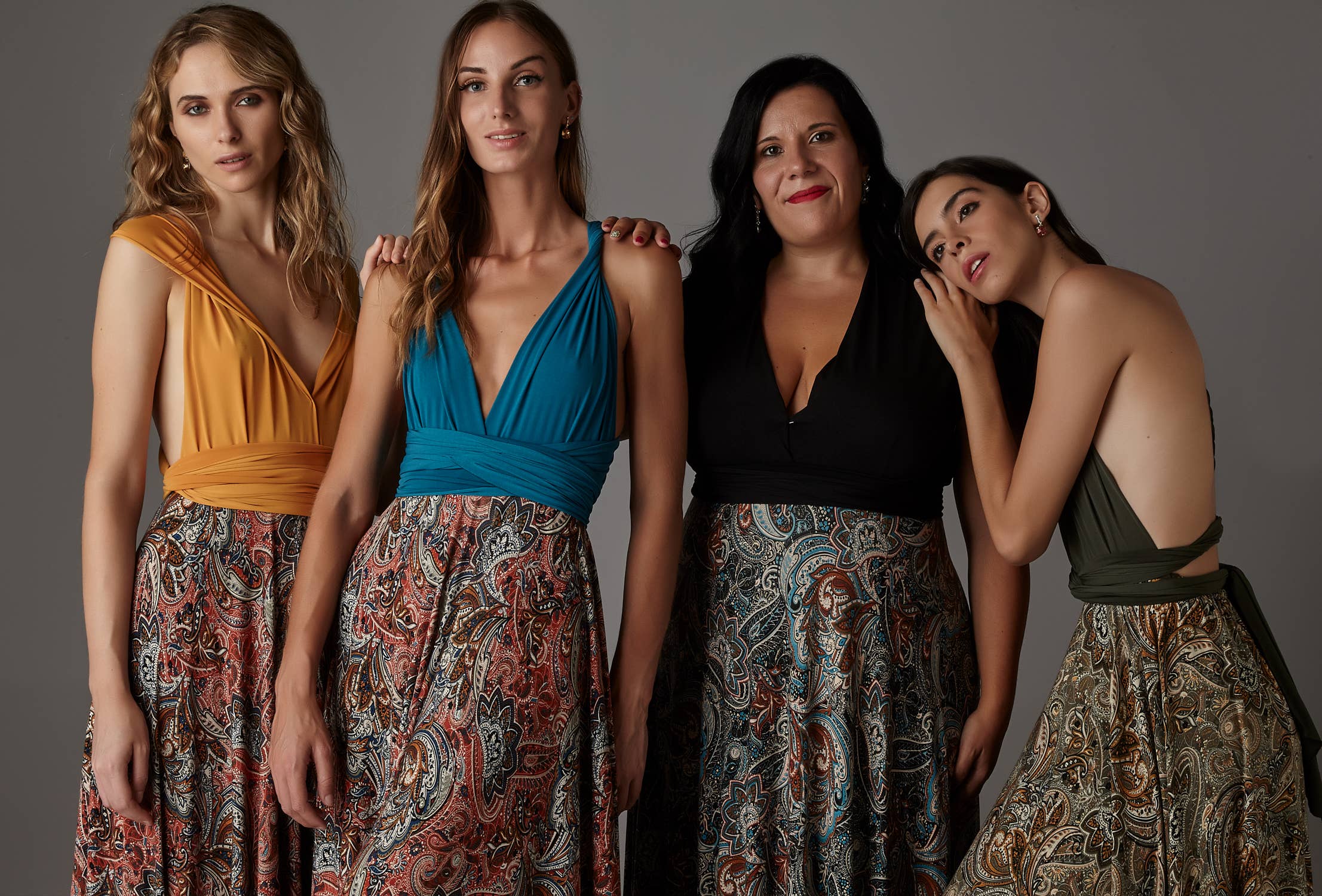 Den lange infinity-kjole i sennepsfarve kan styles på flere måder, så den passer til alle smagsretninger og kropsformer - bind blot kjolen, som det passer dig bedst. Denne model fås i to størrelser afhængigt af kjolens størrelse: Unique Size passer til størrelser 4 til 14 US (34-44 europæisk størrelse). Pris 125€ Plus Size passer til størrelser 16 til 20 US (46-52 europæisk størrelse). Vi anbefaler Plus Size til brystmål fra 100 ESP størrelse og opad (100 FR, 38 UK, 4 IT, 38 US, 16 AUS). Pris 158€