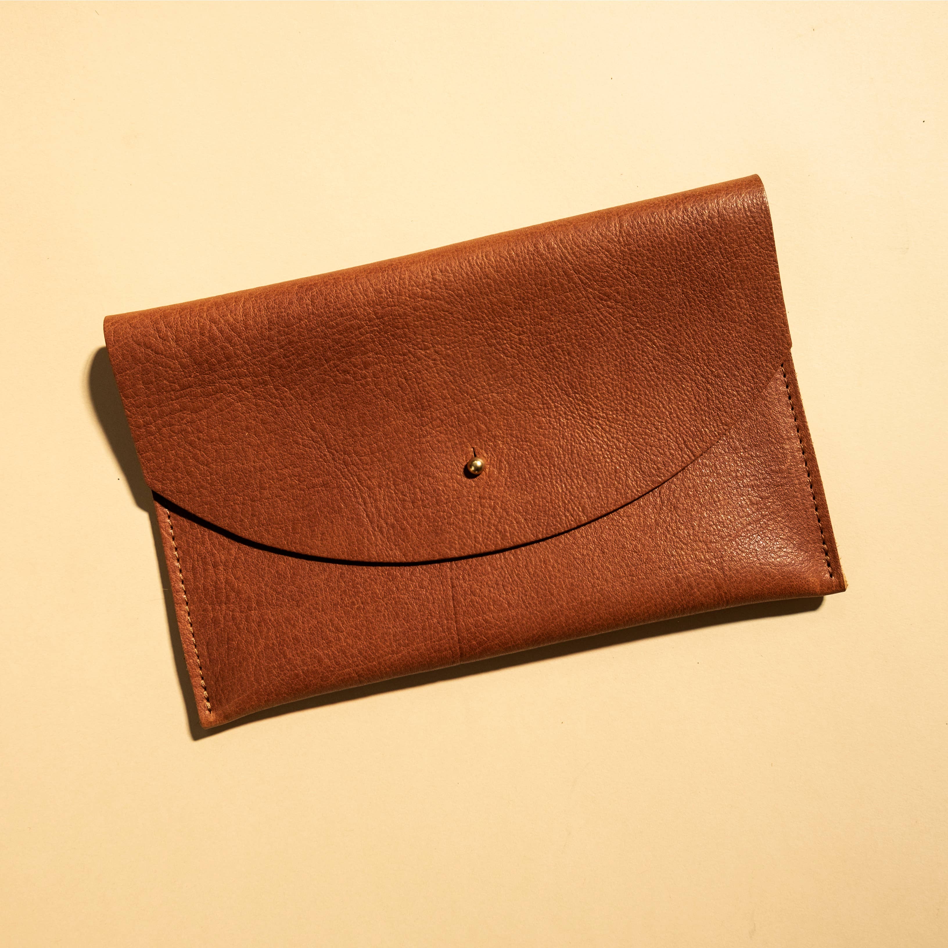 Den perfekte størrelse kobling til rejser eller gå ud. - Læder udvendig - Uforet - Fastgøring af massivt messing - Passer til alt det væsentlige (pas, telefon osv.) - Ca. 8,5“ B x 5,5“ T - Håndlavet i vores Portland, OR studie