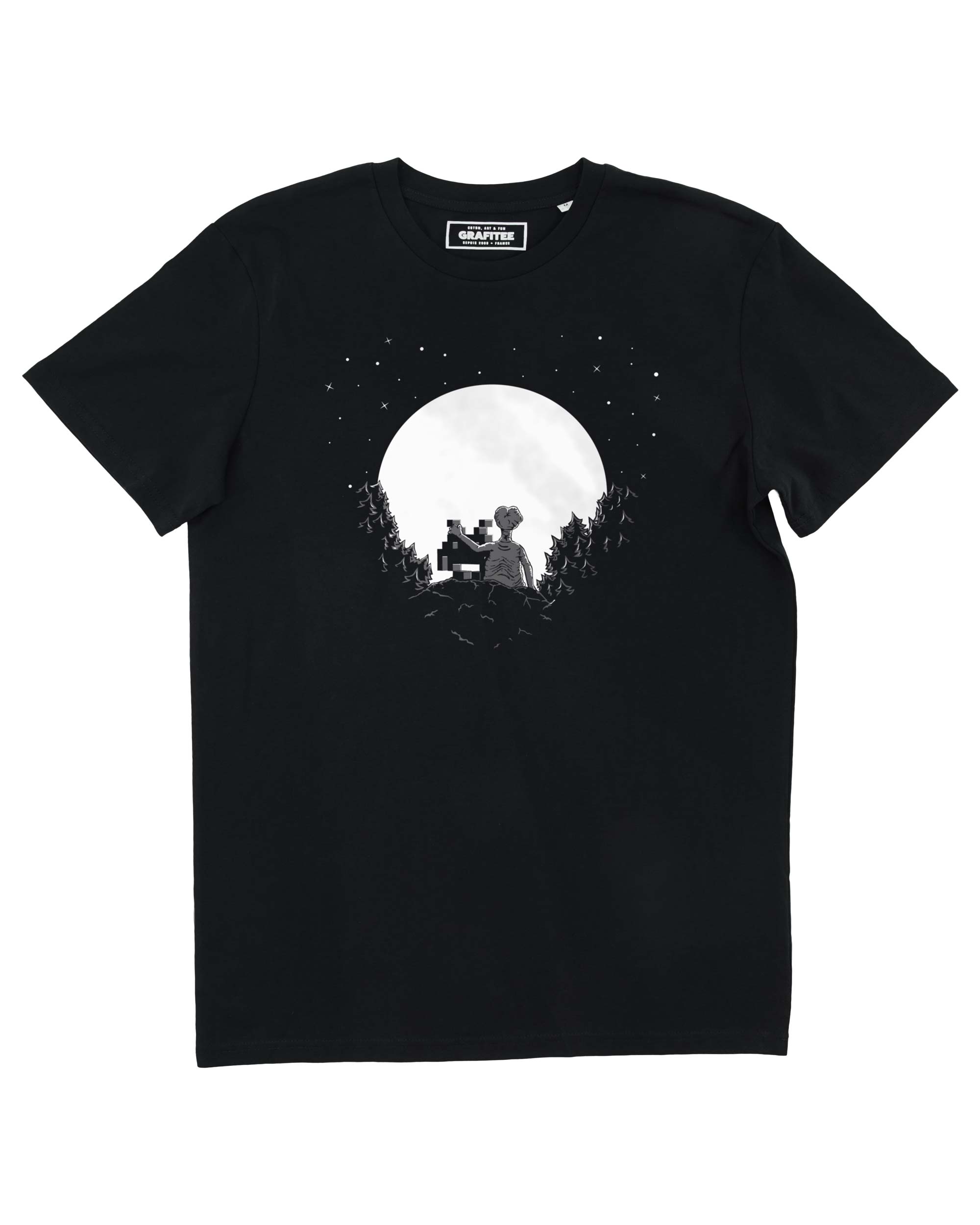 Fremstillet i Frankrig Anledning: Hverdagsbrug og Højtider Farve: Sort Halsudskæring: Rund hals Håndteringsanvisninger: Maskinvask Mønster: Grafik Pasform: Moderne og Unisex Stil: Casual Stof: 100% spundet og kæmmet GOTS økologisk bomuld, single jersey, vasket stof, 180 g/m². Ærmelængde: Korte ærmer Produktsprog: Engelsk Vægt: 180 g (6,35 oz) Mål: 28 x 23 x 1 cm (11 x 9,1 x 0,4 cm) Produktmaterialer: Plastfri, Vegansk, og Økologisk Emballage: Genanvendelig, Genanvendt, og Plastfri Produktion: Etisk produceret