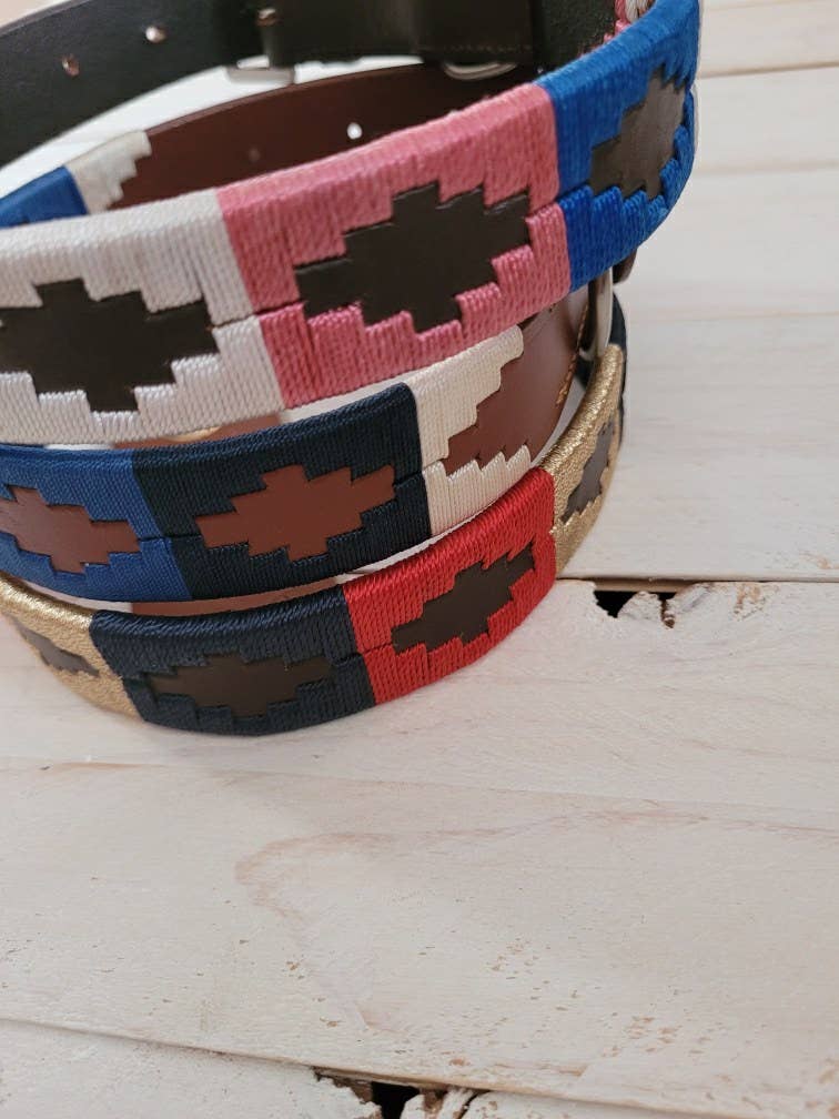 Ethvert ridetøj på dagen #rootd vil være komplet med vores Polo Collection Bælter. Vores vegetabilske garvet sele læder har håndsyet voksgevind for bedre holdbarhed. Der er en til ethvert outfit, da de kommer i tre alsidige farvekombinationer. Marine- Blå, Navy Blå og Hvid på Cognac Læder Royale- Marineblå, Rød, og guld på brunt læder Is - blå, lyserød og hvid på brunt læder Dimensionering: Små/Medium Polo Bælter er 40 inches i længden og ca. 1 og en 1/2 inches bred. Der er huller på 30 inches, 31 inches, 32 og en 1/2 inches, 33 og en 1/2 inches, 34 og en 1/2 inches og 36 inches. Store Polo Bælter er 46 inches i længden og ca. 1 og en 1/2 inches bred. Der er huller på 36 og en 1/2 inches, 37 og en 1/2 inches, 38 og en 1/2 inches, 40 inches, 41 inches, og 42 inches. Vores produkter er håndlavede, og derfor kan syning og hulplacering variere lidt fra produkt til produkt.