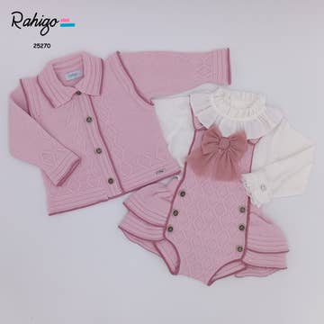 Strikket med blå detaljer. Din nyfødte vil se ud som en dejlig sky. Matchende sokker, vanter og kasket. Fås i hvid eller elfenben Ref. 2558W, 2558I