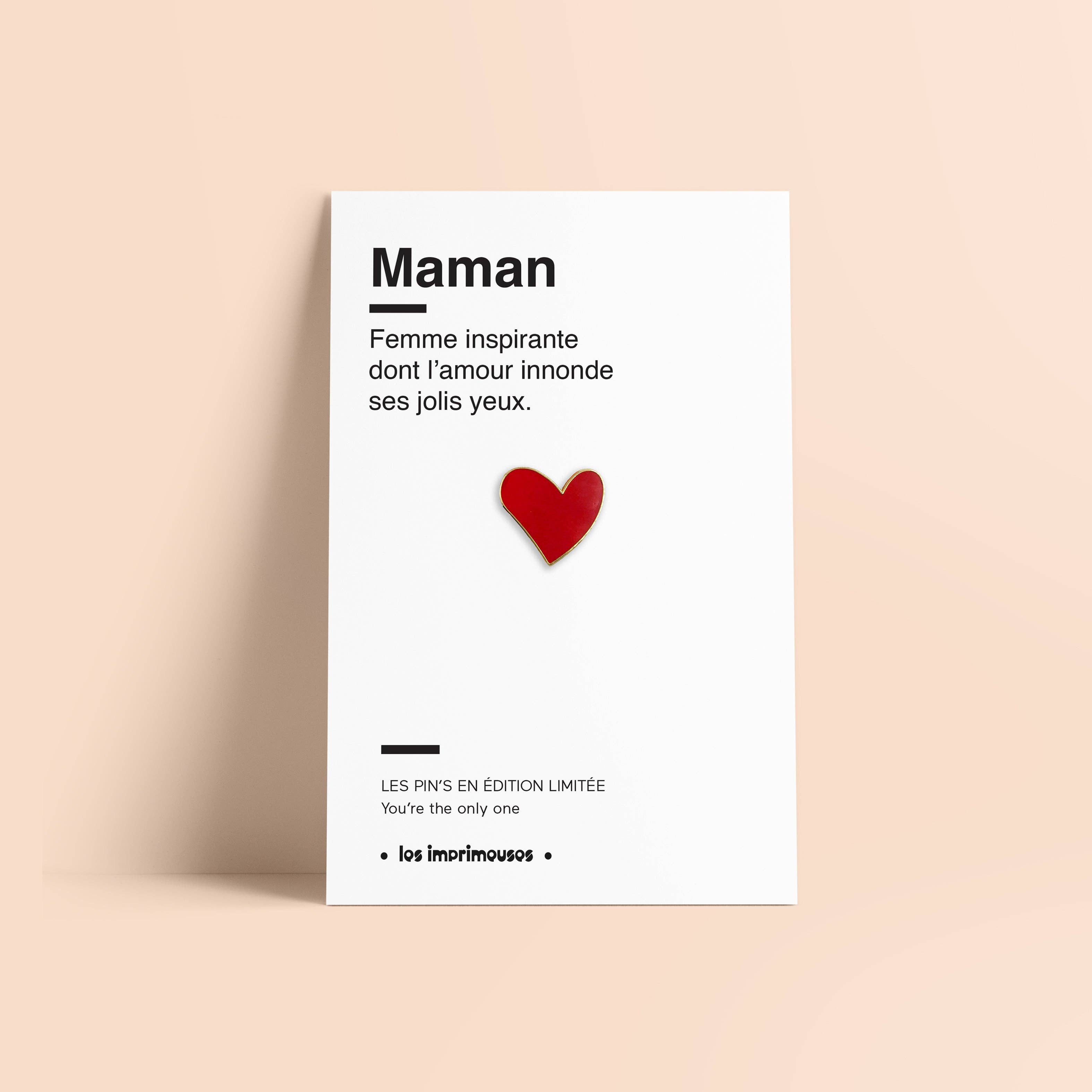 Beskrivelse Nummereret emaljepin BOGSTAV for at fejre vores vidunderlige bedstemødre. - Fordi et bogstav siger mere end ord! - Kan bæres på en t-shirt, en sweater eller hænges i tusindvis på dine muleposer. - Alle lejligheder er gode til at samle på Les Imprimeuses pins. - Nummereret pin. Detaljer * Dimensioner på pin: 2,2 x 1,4 cm * Dimensioner på kortet: 7,5 x 12,5 cm * Emaljeret og nummereret pin * Guld, hvid og rød
