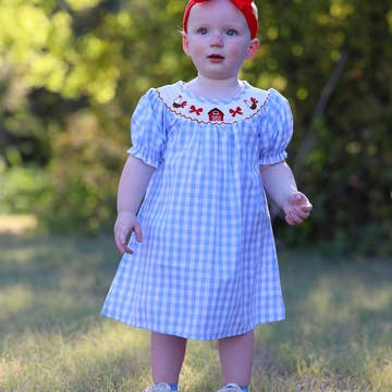 Forkæl dig selv med den perfekte feriekjole! Vores Thanksgiving Farm Blue Smocking Broderet Pigekjole er prydet med fantastisk smocking broderi, der tilføjer et strejf af charme til din lille ens look. Lavet af højkvalitetsstof, er denne kjole komfortabel, stilfuld og perfekt til enhver Thanksgiving-fejring. Gå ikke glip af denne uundværlige tilføjelse til dit barns garderobe! SKU: DRG42825 Materiale: 100% Bomuld