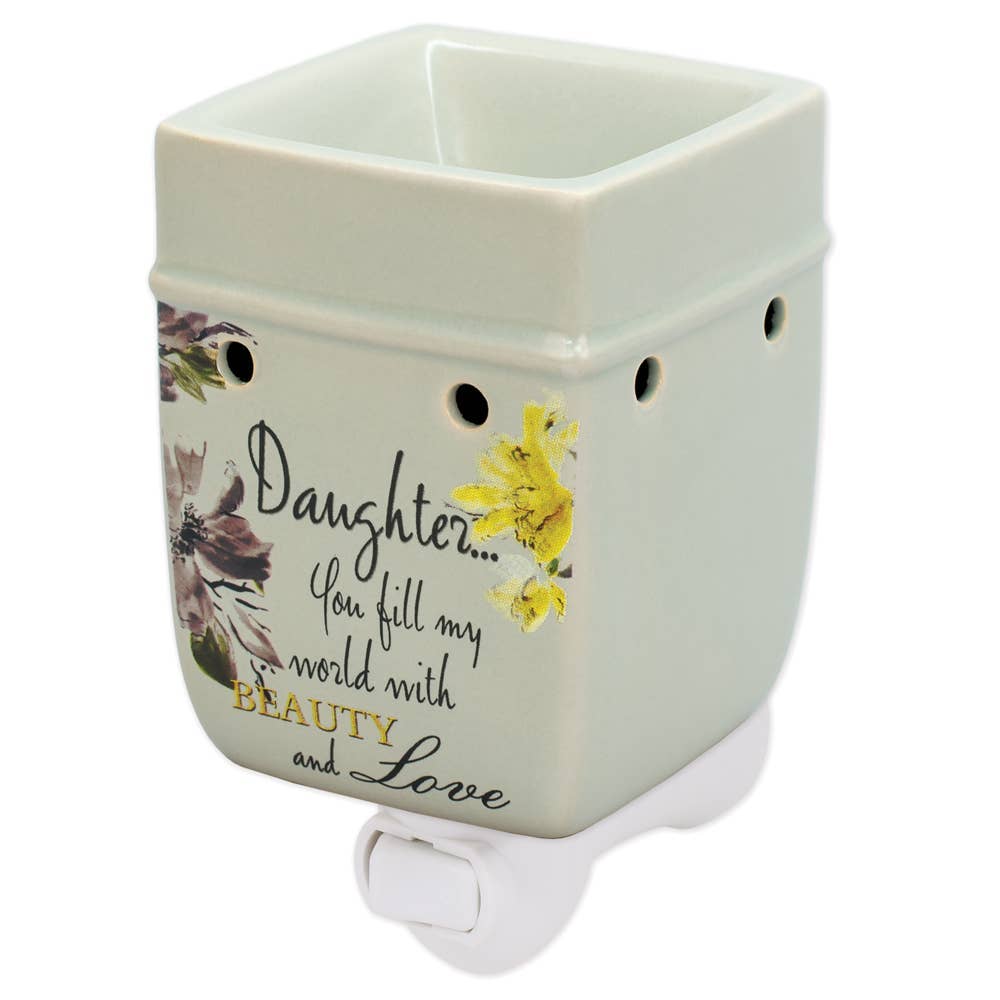 Lavet af keramisk stentøj. Arbejder med enhver standard 110V 3 gren stikkontakt og bruger en pære, der er let udskiftelig til at smelte og varme voks tærter og duftende olier. Gør også et dejligt natlys fra lampens bløde glødende lys, der bruges til at opvarme duften. Designet med et citat for at tilføje mening som en gave eller home decor element. Størrelsen er 6,5 x 4,5 x 4,5.
