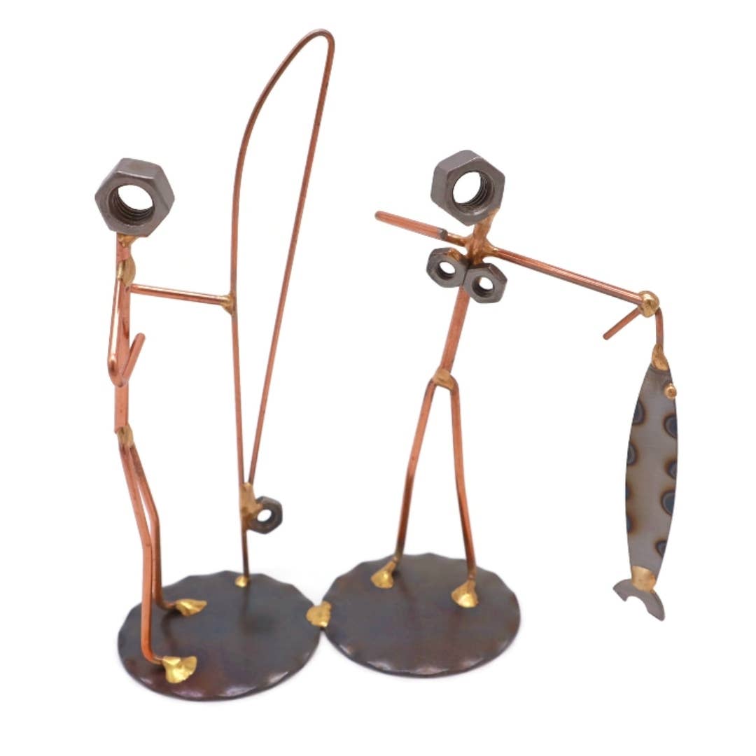 Hvad er sjovere end en? TO! Vores Tandemcykelfigur er lavet af møtrikker, loddestænger, stål og er fantastisk at bruge som et trofæ eller til at ledsage dine visitkort til et sjovt, iøjnefaldende skrivebordstilbehør. (Visitkortindehaveren kan købes separat.) Denne samlefigur er ca. 2,5" bred og 5,5" høj og er en sjov gave til din cykelpartner eller som en mindegave til at huske alle dine cykeleventyr. Alle Rock Creek Metal Craft-produkter er individuelt håndlodet for unikke, håndværksmæssige finish lige her i USA; hvilket skaber stærke, holdbare og langtidsholdbare figurer, der er unikke. Vi tilbyder en bred vifte af over 500 samlerbare metalskulpturer, hver håndlavet, samleobjekt og omhyggeligt udformet.
