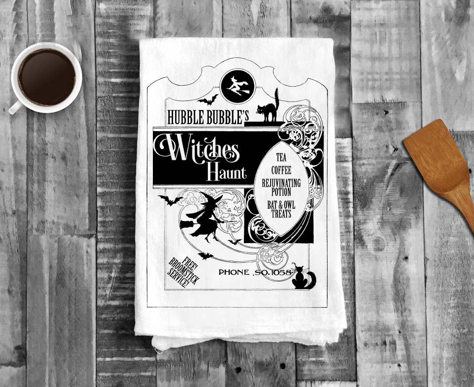 Avery Lane Gifts Halloween-køkkenhåndklæder i bomuld med Cafe De Full Moon Paris design