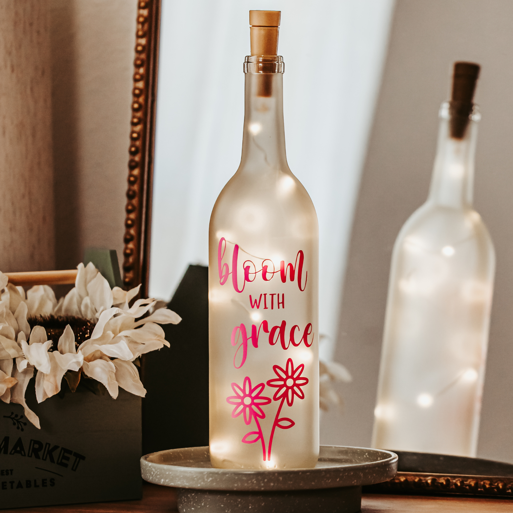 Smukke produkter, elsker at lysene er forbundet til korken i toppen af flasken, hurtig levering!