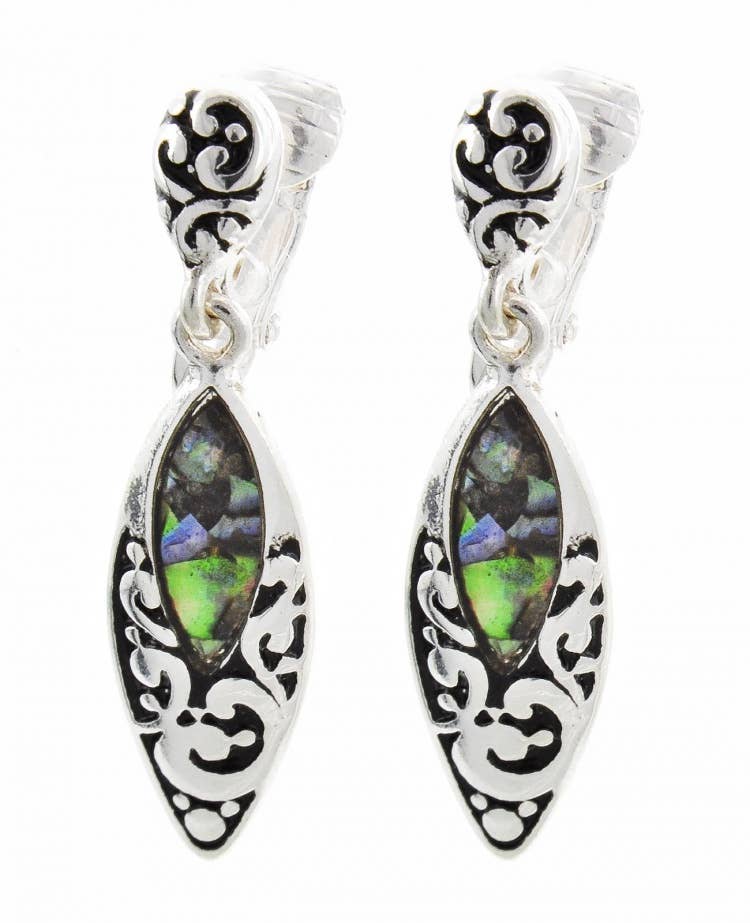FR2409 Mat sølv filigran metal dråbeklips øreringe