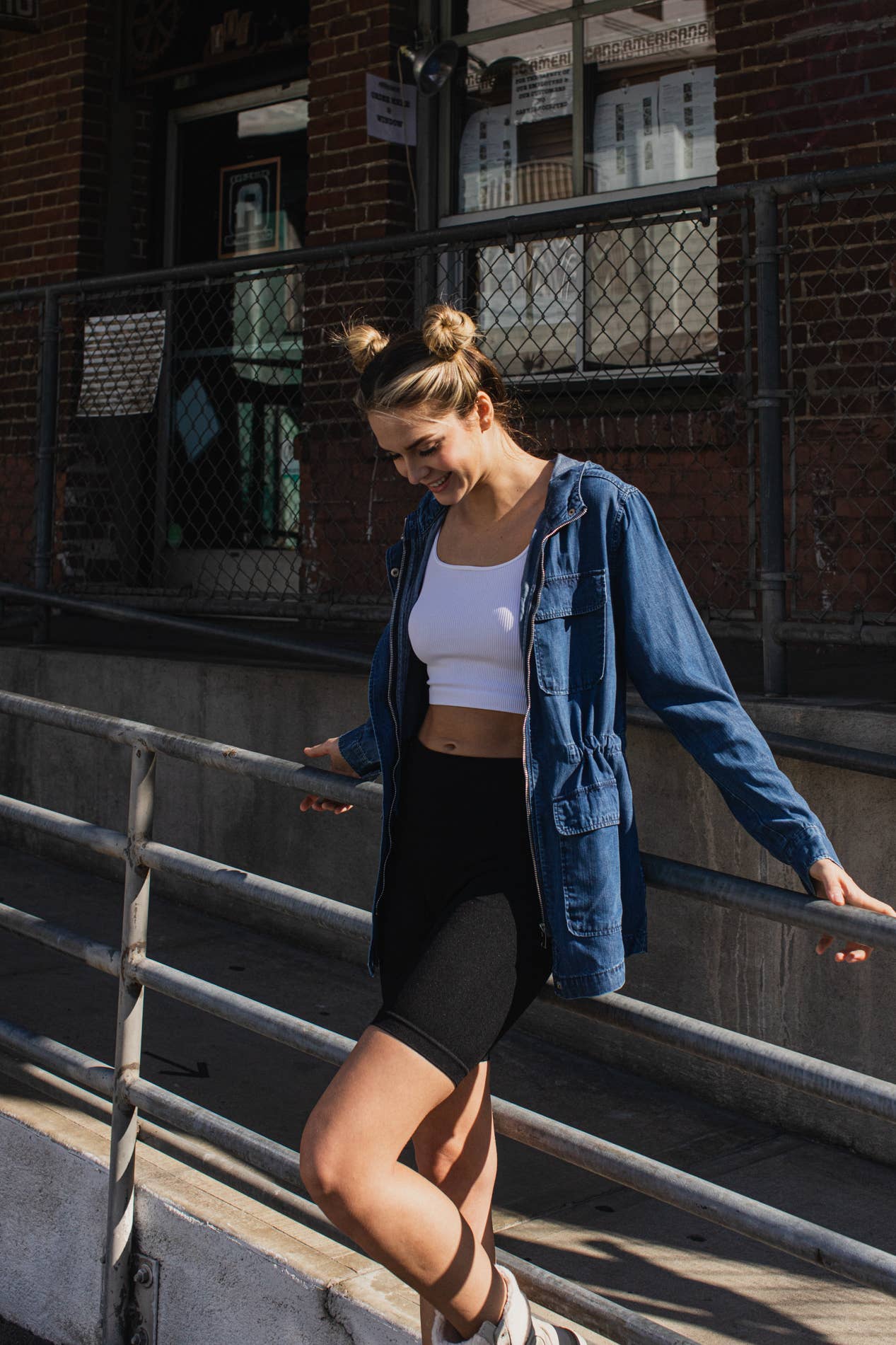 Destrueret denimjakke med håndslibning Pasform: Lige pasformet silhuetjakke. Funktioner: spids krave, brystlommer med klap, sidelommer, knaplukning foran, ærmer med manchet, knap. Indhold: 66% Bomuld / 23% Polyester / 10% Rayon / 1% Spandex Mål fra størrelse S Længde: 21 1/2" Modelmål Dakota har størrelse S på Højde: 5' 9" Bryst: 31" Talje: 24" Hofter: 34" Stil: EJ2053 STØRRELSESFORHOLD STØRRELSE: S - M - L ANTAL: 2 - 2 - 2