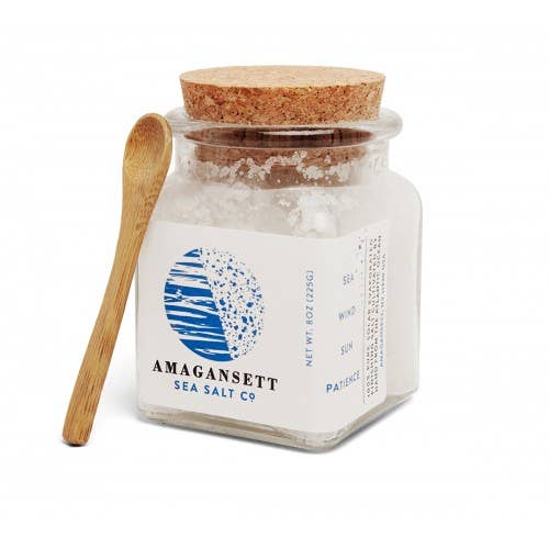 Vores 100% rent Amagansett havsalt, høstet i hånden fra Atlanterhavet nær spidsen af Long Island med en kort hvile på vores saltværk for at fordampe under solen i den rene havbrise til korn med den perfekte smag, udseende og konsistens. Brug vores salt som et efterbehandlingssalt og klæd dine fødevarer sparsomt - en eller to krystaller pr. Bid er rigelig. Vores salt er moderat grovkornet og overraskende „sødt“ for at give en behagelig, blød crunch og den perfekte smag. Fabelagtig på bøf, skaldyr, grøntsager, frugt, salater, chokolade. Prøv et let drys på melonterninger! Sæt et par korn på et stykke karamel eller chokolade. Amagansett Sea Salt er professionelle kokke, der ikke er så hemmelig hemmelighed for at øge smagen og omdanne fødevarer til et helt nyt niveau! Vidunderligt til dit eget spisekammer og som gaver til helligdage og andre specielle lejligheder. 1-ounce nettovægt størrelse, i en attraktiv glaskrukke, der ser godt ud på en bordplade. Fås også i størrelser på 2½ ounce og 8 ounce.