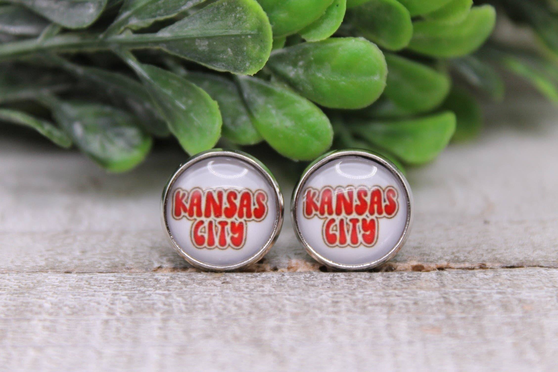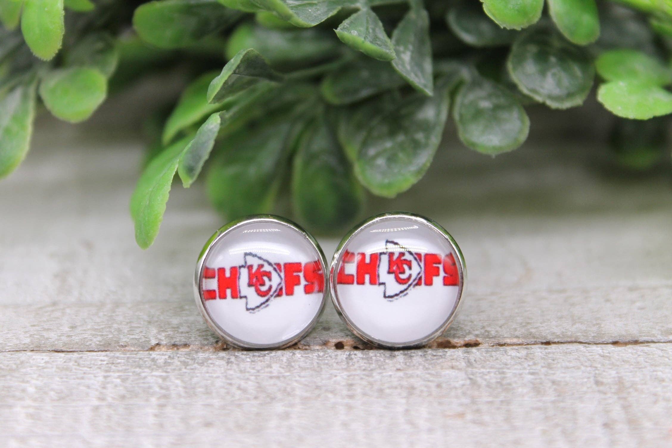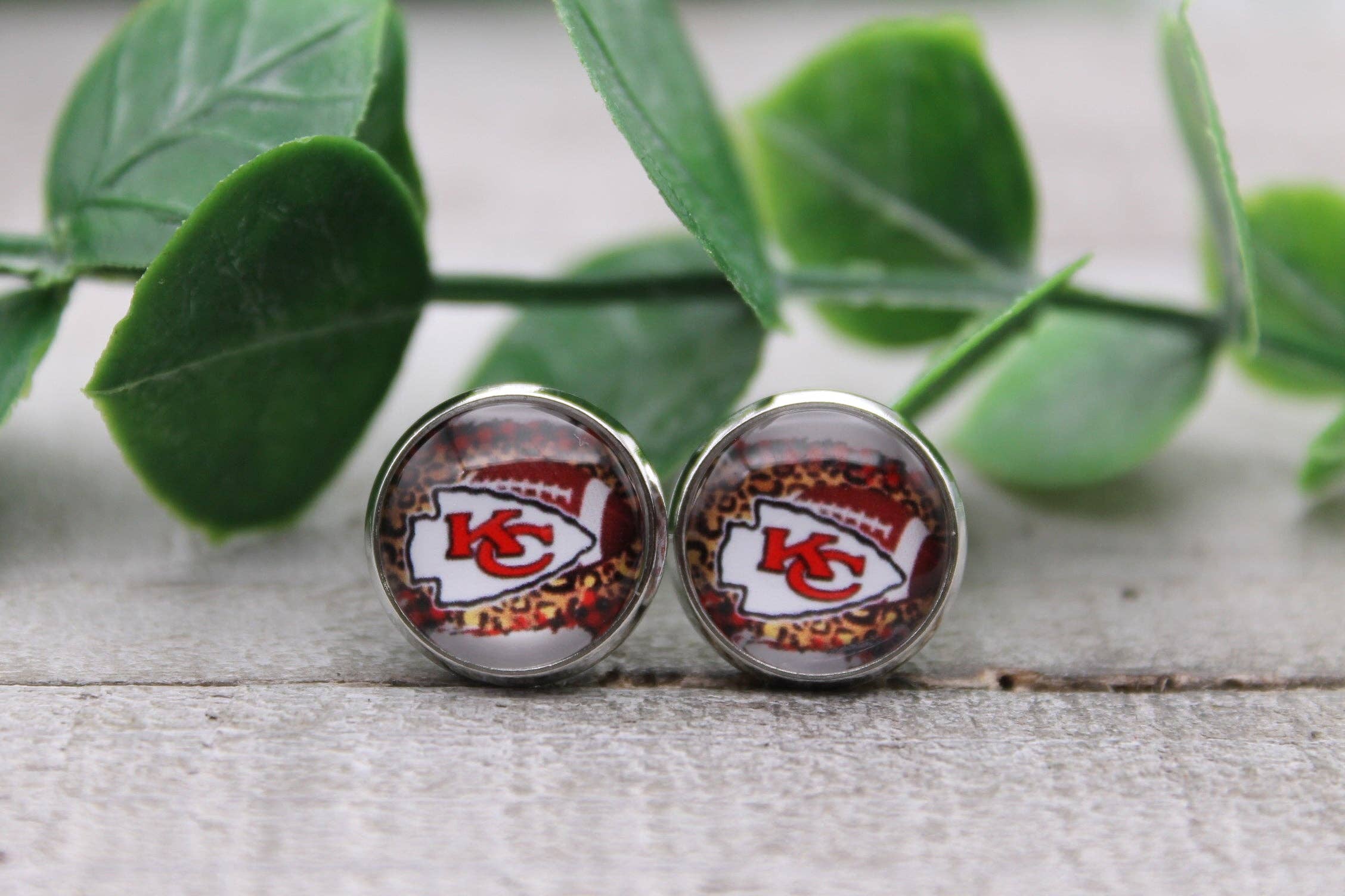KC Chiefs Fodbold - Leopard Arrow || 12mm Glas Stud Øreringe || Hypoallergen
