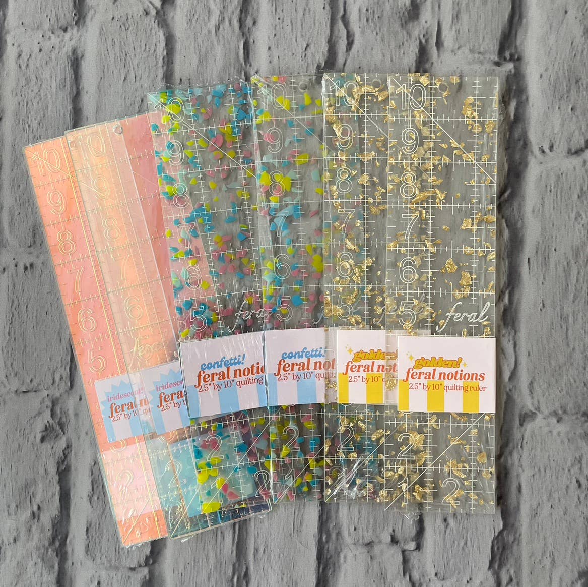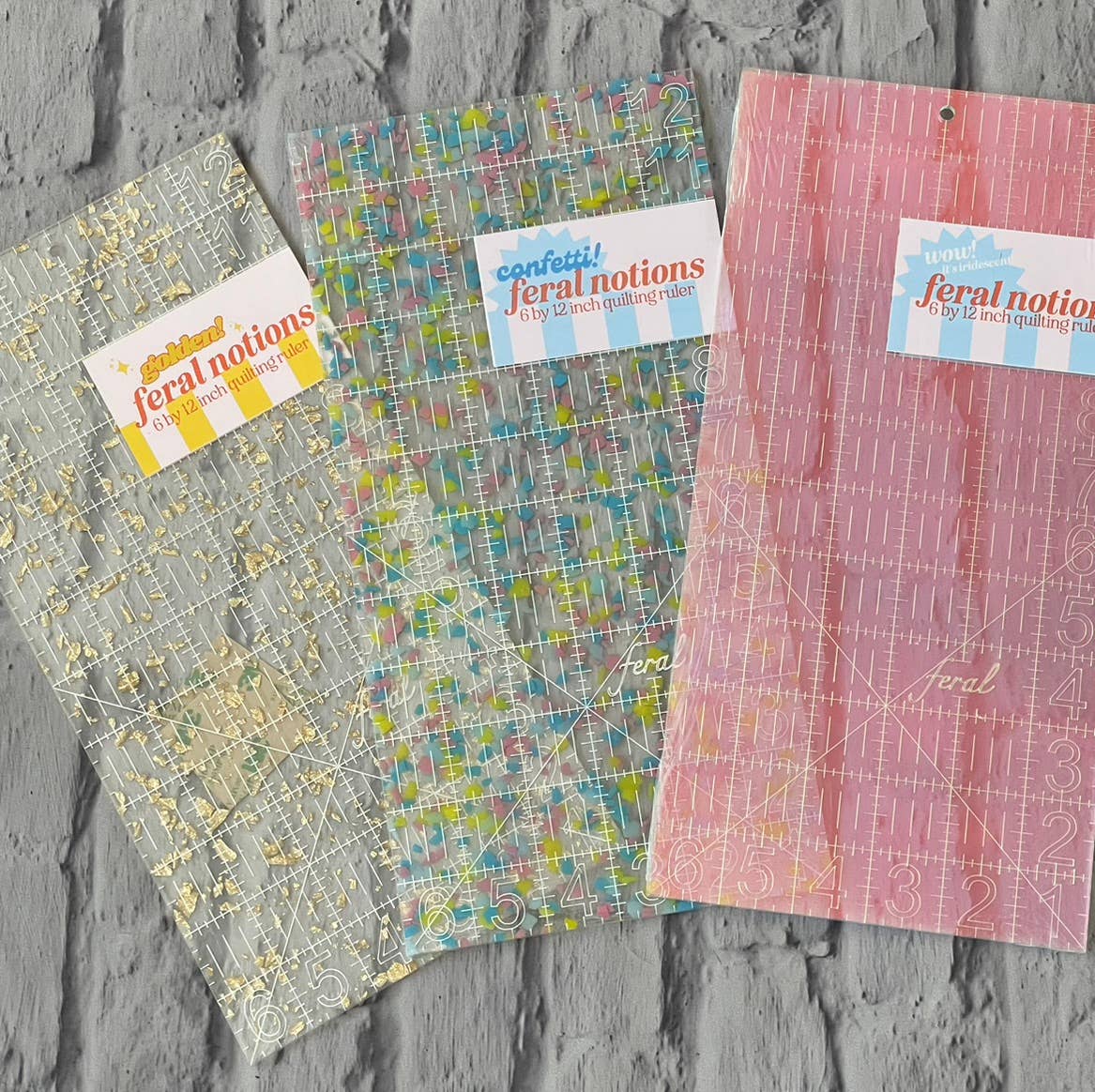 En quiltlineal, der er sød OG får arbejdet gjort - i tre smukke farvevarianter! Denne lineal på 6 x 12 tommer er praktisk nok til at klippe til din dyne og sød nok til at få dine quiltebesties til at savle. Markeringer er hver 1/8 tomme, med en diagonal linje på 45 grader for nem trimning af halvfirkantede trekanter. Laserskåret og indgraveret af 1/8 tommer akryl. Mærkerne er indgraveret, så de aldrig gnides af. Skridsikre prikker leveres med hver lineal.