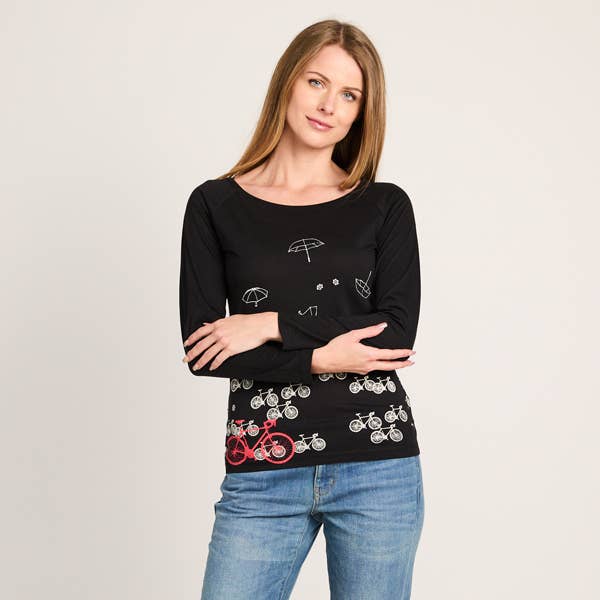 Fremstillet i USA Anledning: Hverdagsbrug og Loungewear Farve: Hvid og Sort Halsudskæring: Sabrina-udskæring Håndteringsanvisninger: Maskinvask Pasform: Moderne Stil: Casual og Retro/vintage Stof: 70% bambus, 30% økologisk bomuld. Bæredygtig. Fair trade. Ærmelængde: Langærmet Vægt: 170,1 g (6 oz) Produktmaterialer: Plastfri og Økologisk Produktion: Fairtrade