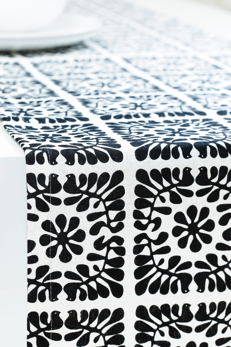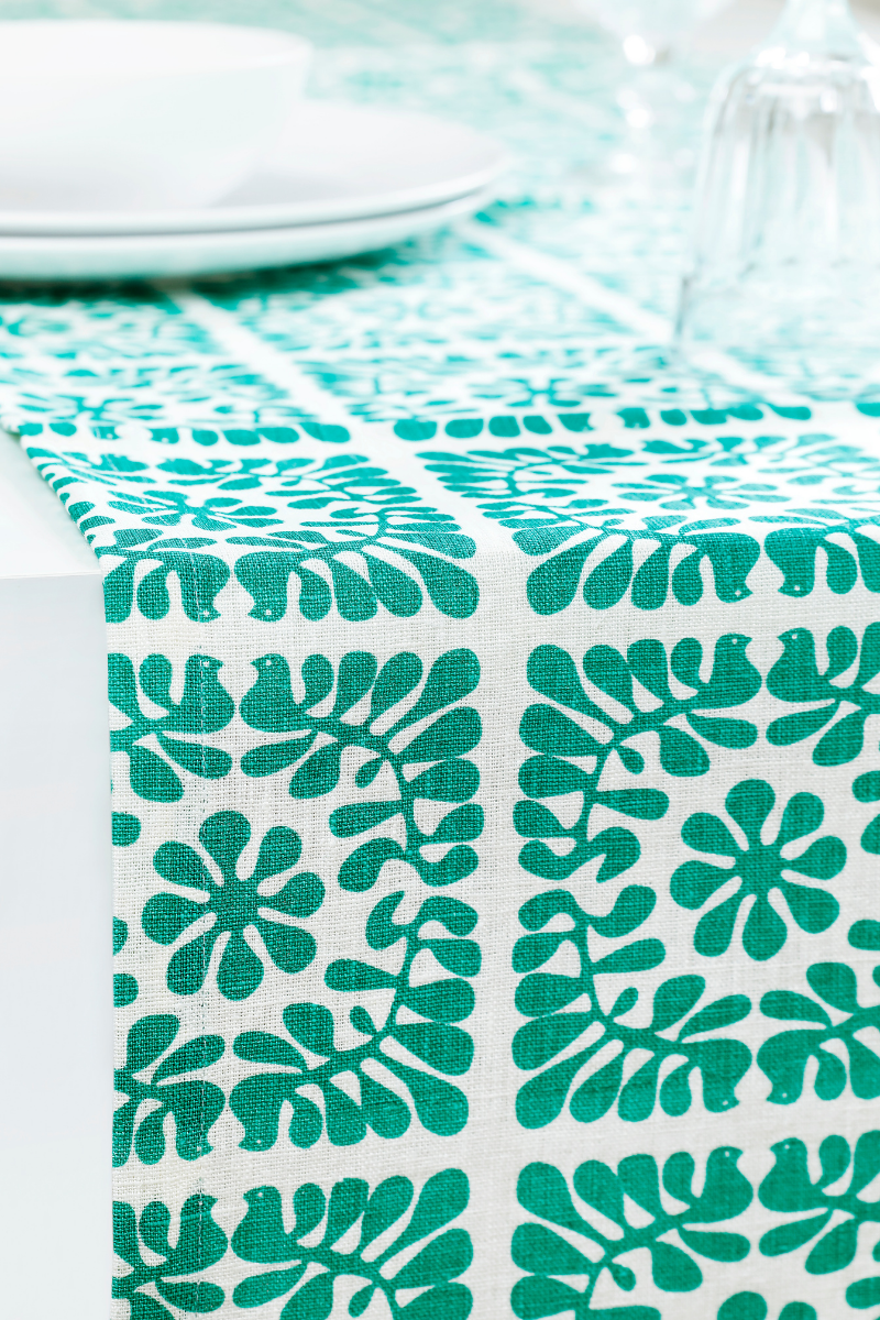 Linen serviet lavet af stenvasket linned stof med lys turkis PALOMA mønster. håndlavet i Estland. Mønstrede servietter trykt på bleget hvidt linned. Servietter er farvestrålende iøjnefaldende, men alligevel holdbare og praktiske til daglig brug. PALOMAS trykte stof er inspireret af Skandinaviens stiliserede retromønstre i 1960'erne og 1970'erne samt de nordiske landes nationale folklore. Åndbar, hudvenlig, medium tæthed linned stof smuk og luksuriøs 2cm bølge finish med diagonal vinkel Strygning er slet ikke nødvendigt Materiale: stenvasket linned stof, lavet i Europa Farve: lys turkis Størrelse: 40 x 40 cm Pleje: Maskinvaskes ved 60 grader C; Vaskecykler centrifugeringshastighed på 600 rpm eller lavere; Tørring tilladt ved medium temperatur; Stryg om nødvendigt med dampstrygejern ved maksimal varme.