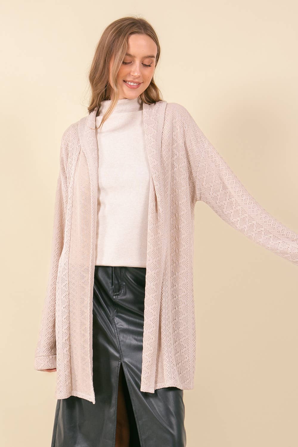 Cardigan med V-hals og striber foran samt knaplukning - Oversize og afslappet pasform for komfort og stil - Lange ærmer med ribkanter - Praktiske lommer foran STIL MÅL (STØRRELSE SMALL) - Total længde 75 cm (29 1/2") - Brystvidde 54,5 cm (21 1/2") - Hofte 54,5 cm (21 1/2") - Ærmelængde 53,5 cm (21") - Skulderbredde 54 cm (21") Materiale: 39% akryl, 31% polyester, 30% nylon Modellen er 178 cm høj (5'10"), med bryst 86 cm (34"), talje 61 cm (24"), hofter 89 cm (35"), iført størrelse S