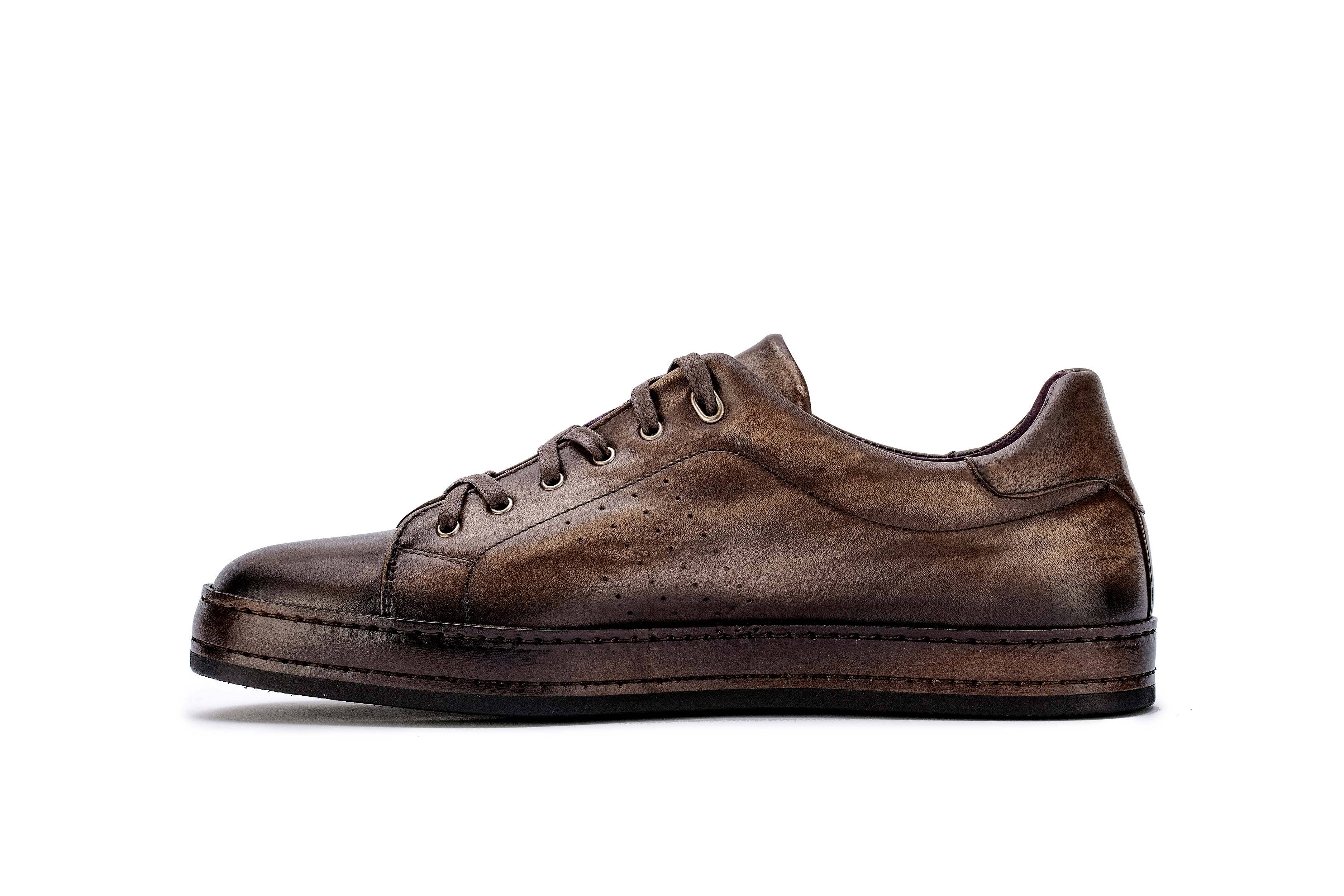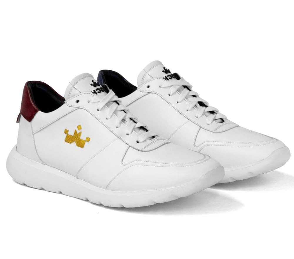 Alsidige og sporty læder sneakers! Sammensmeltningen af materialer, teksturer og farver giver denne linje en alsidig, afslappet fornemmelse til daglig brug uden regler at følge. Produktegenskaber * moderne og komfortabelt design * fleksibel bevægelse * justerbare snørebånd og nem pasform * ekstra let gummisål * skridsikre gummisåler * håndlavet med holdbare materialer Kernematerialer * ægte europæisk læder * stof * læderforing * hypoallergeniske metaldetaljer * 100% polyester snørebånd * gummisål Farveindstillinger * Off-hvid/Beige/Sort * Hvid/grå/blå * Hvid/Beige/Rød Oplev den alsidige stil af disse sportslige sneakers til mænd!