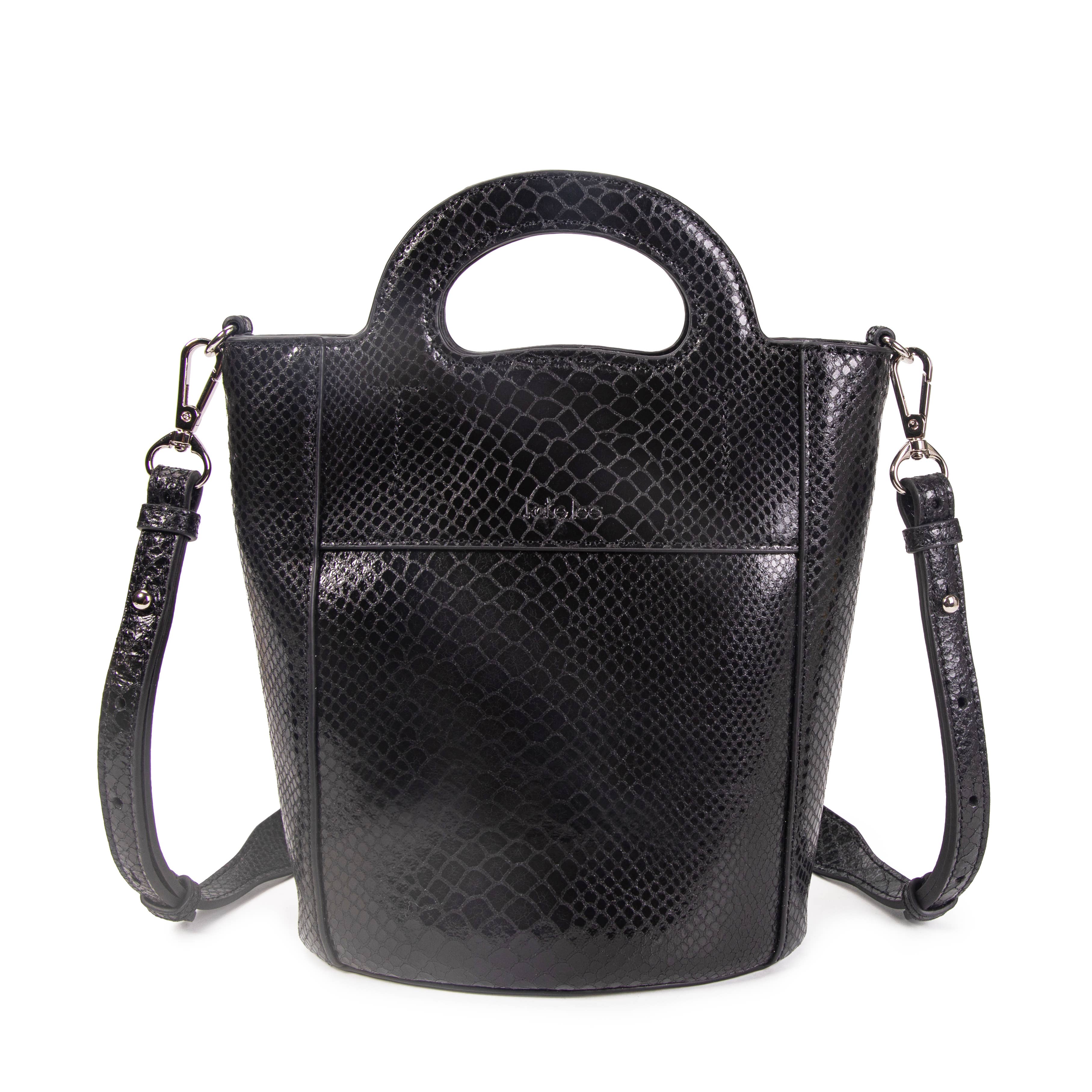 Beskrivelse: Perforeret koeskind håndtaske eller skulderrem Magnetisk lukning Aftagelig og justerbar læder skulderrem Meget blød Egenskaber: Interiør: 1 aftagelig lynlåspose Guldmetal tilbehør Længde x Højde x Bredde: 35 x 28 x 12 cm