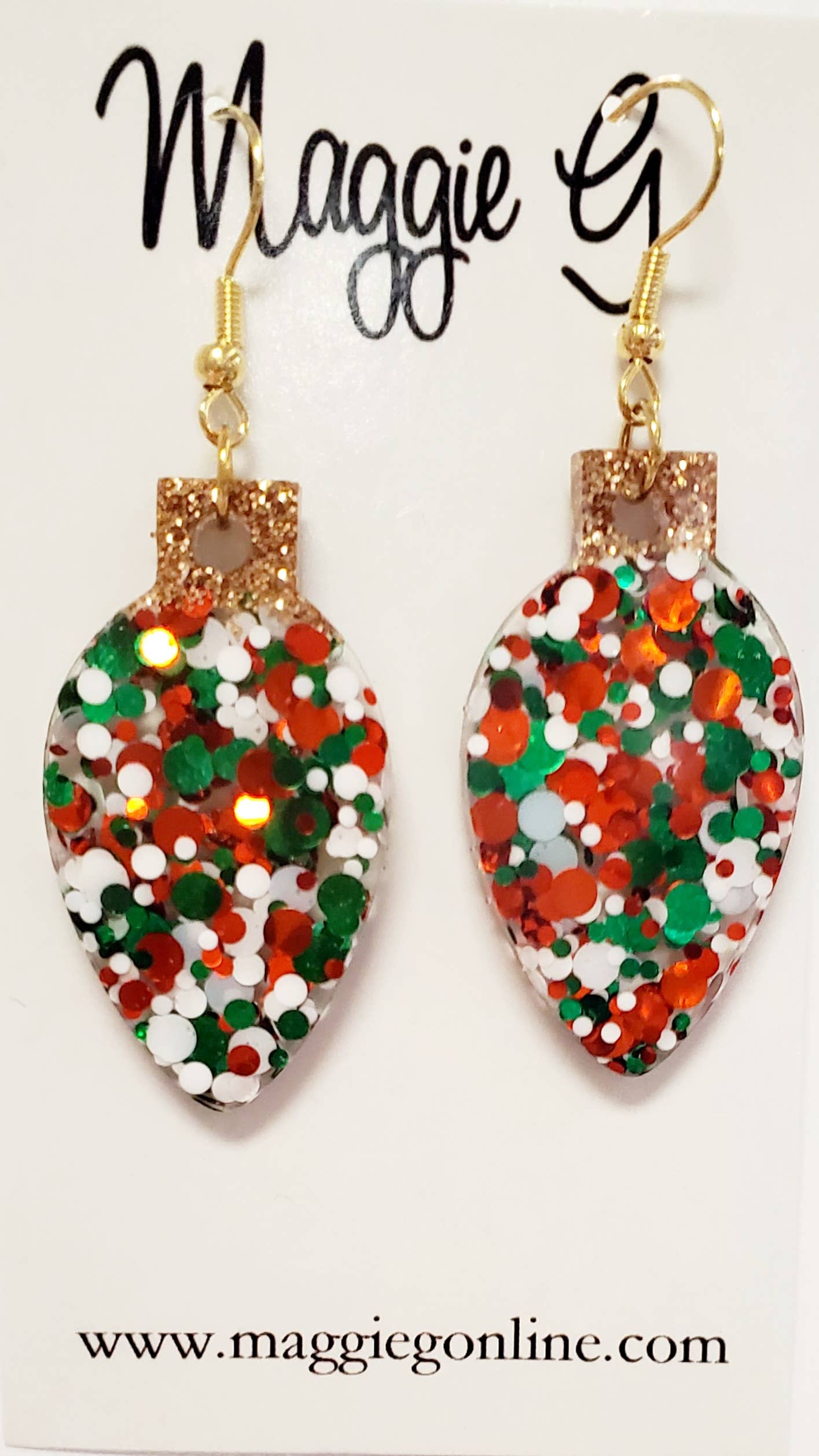 Jul lyspære/guld/harpiks og glitter øreringe