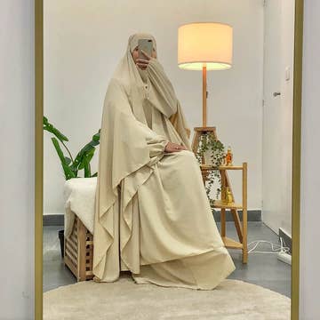 Sort abaya med en silkeagtig fornemmelse. Fremstillet i et eksklusivt stof, typisk for Mellemøsten, af koreansk oprindelse. Længde cirka 145 cm. Fås i størrelser fra 38 til 48. Produceret med omhu i Europa.