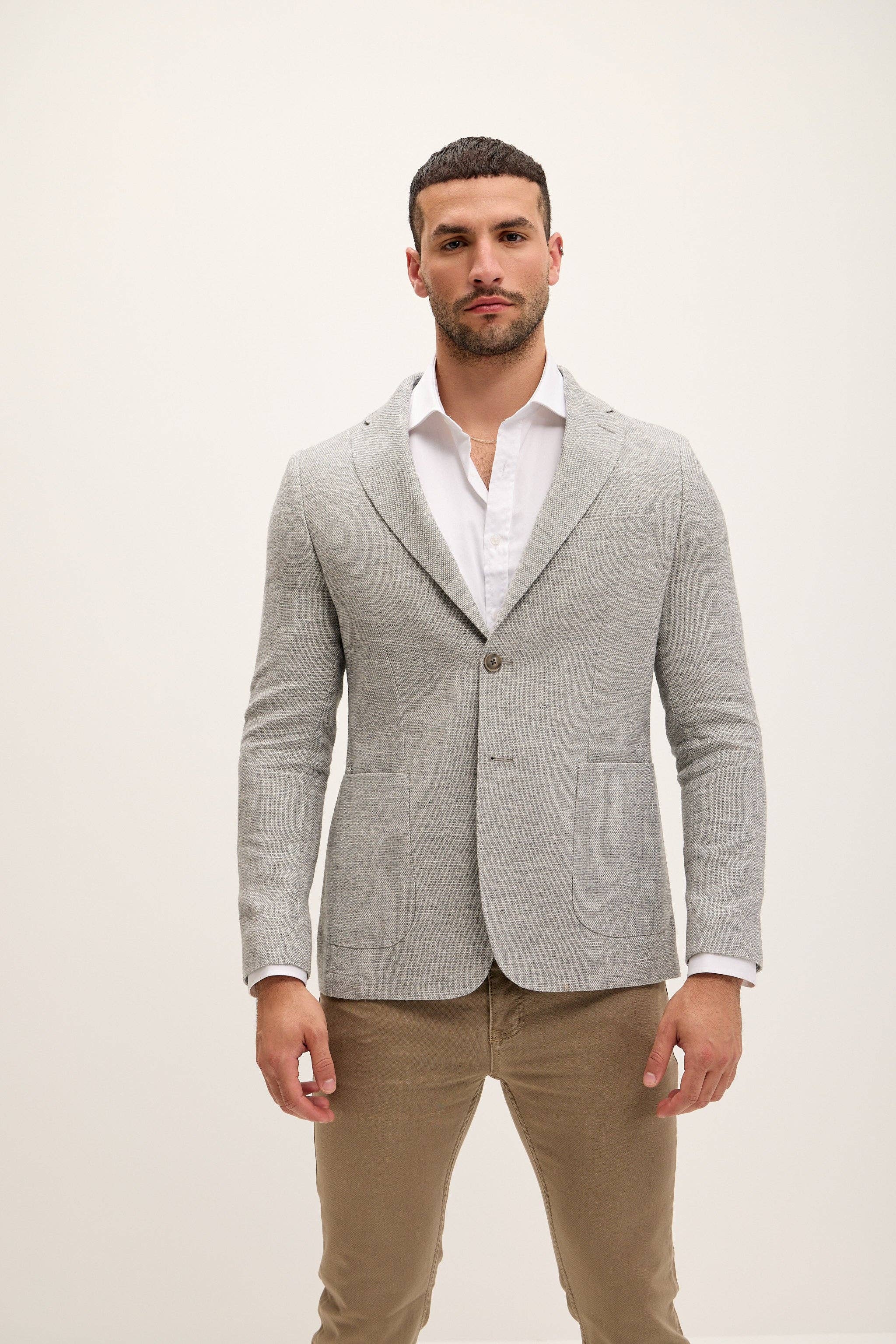 DETALJER Faux ruskind ståkrave med spænde detalje hak revers når foldet. 3-knaps lukning, epauletter på skulderen, og bryst- og sideklaplommer. STØRRELSE + PASFORM Skræddersyet pasform, for at finde din korrekte størrelse brug "hvad er min størrelse" knappen. SAMMENSÆTNING 91% Polyester 9% Elastan Fremstillet i Tyrkiet Stil #5894 PLEJE Maskinvask koldt med lignende farver Må ikke bleges Koldt vand