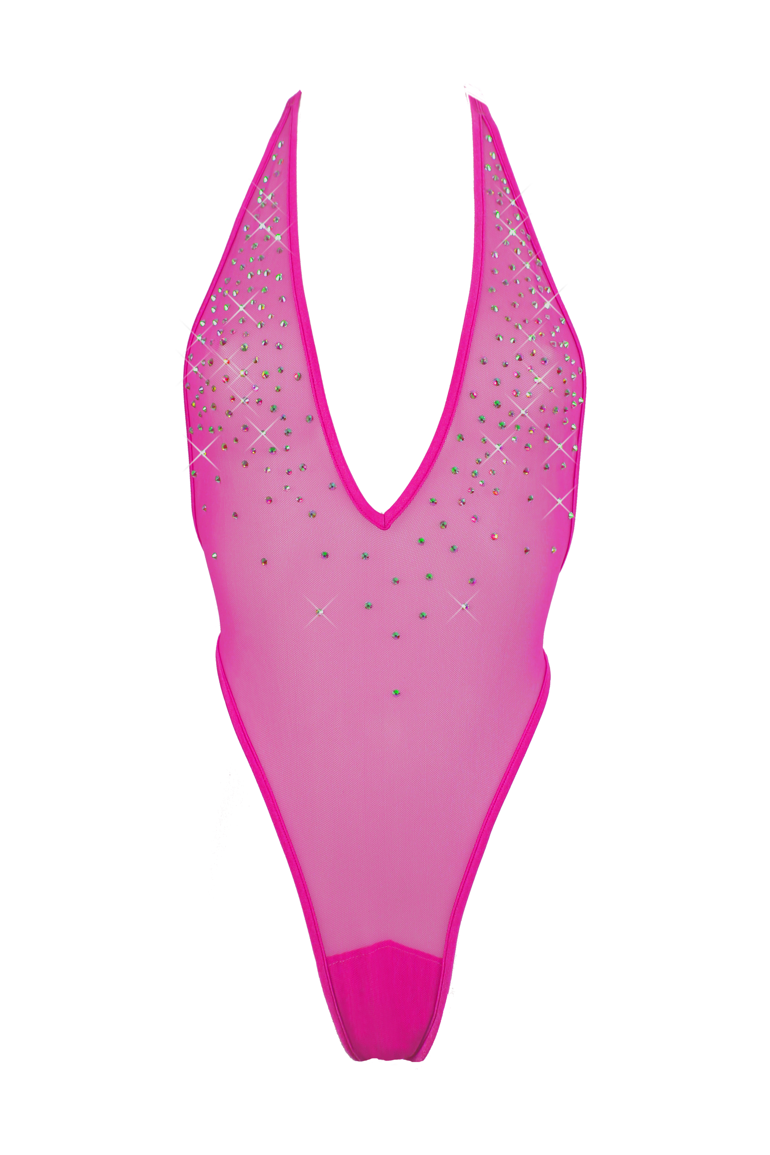 Højtaljet fiskenet bund + g-streng / Todelt sæt / NEON PINK