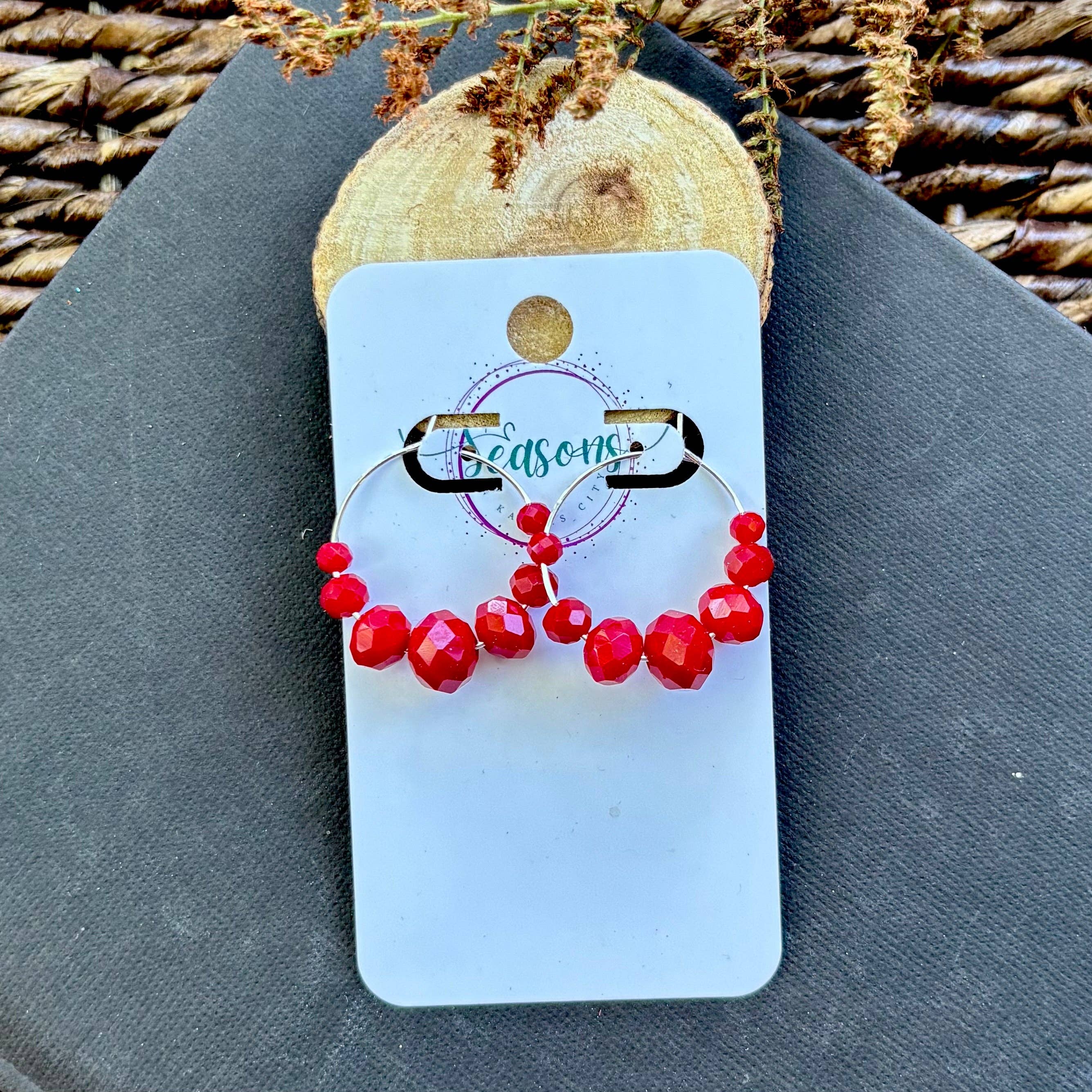 Denne trio i stor skala er lavet af blågrøn, rød og marineblå for at koordinere med KC Current kvinders fodboldholdfarver. Den største fodbold er ca. 4 cm på tværs. De er færdige med rustfrit stål hardware.