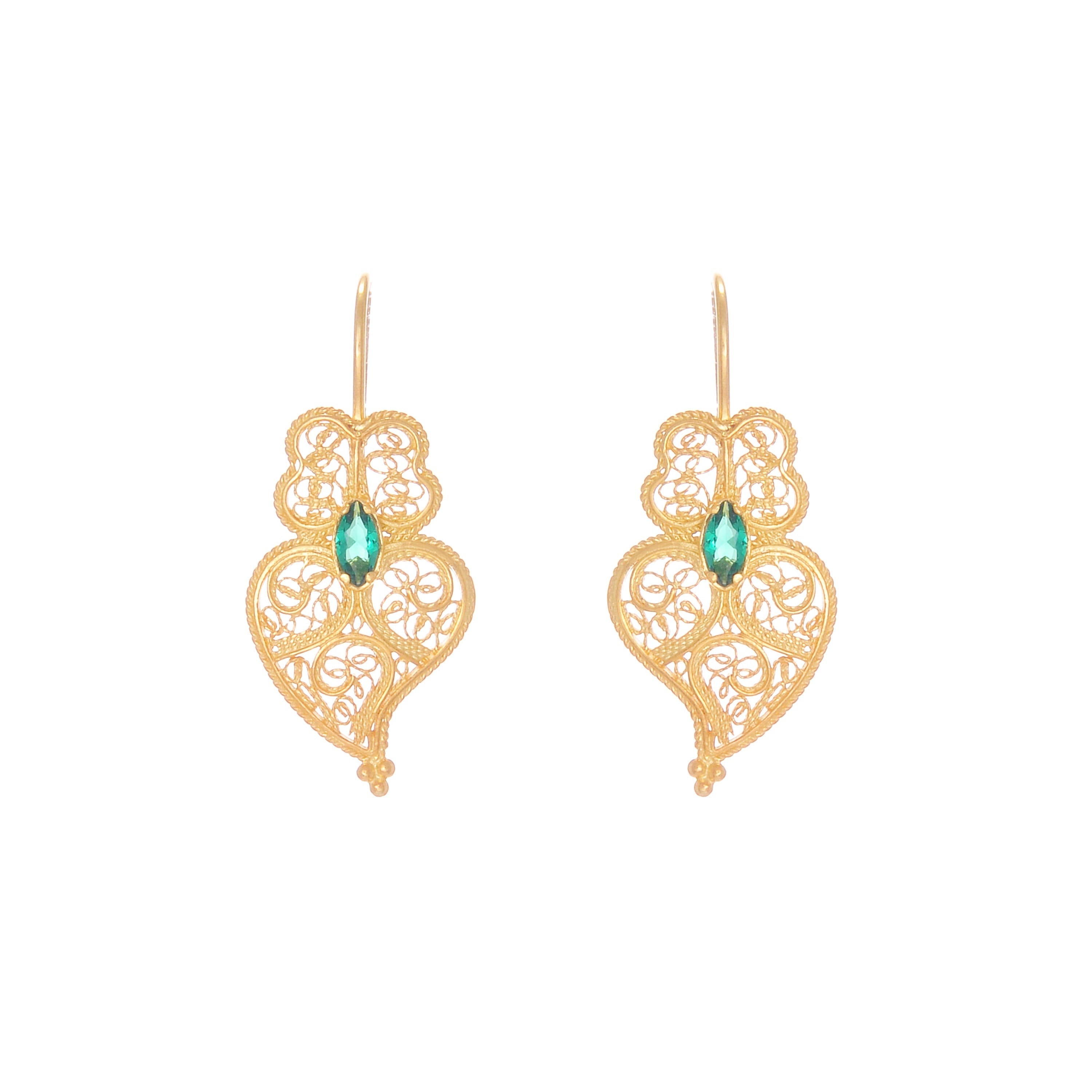 Silver Princess øreringe i filigran, en del af The Classics Collection. Princess øreringene er efterkommere af Queen øreringene og repræsenterer frugtbarhed og moderskab. Den trekantede form er et udtryk for femininitet, og det centrale vedhæng symboliserer forbindelsen mellem mor og barn. Guldplateret sølv 925‰ øreringe med 4,0 cm og 4,1 gr. Håndlavet i Portugal.