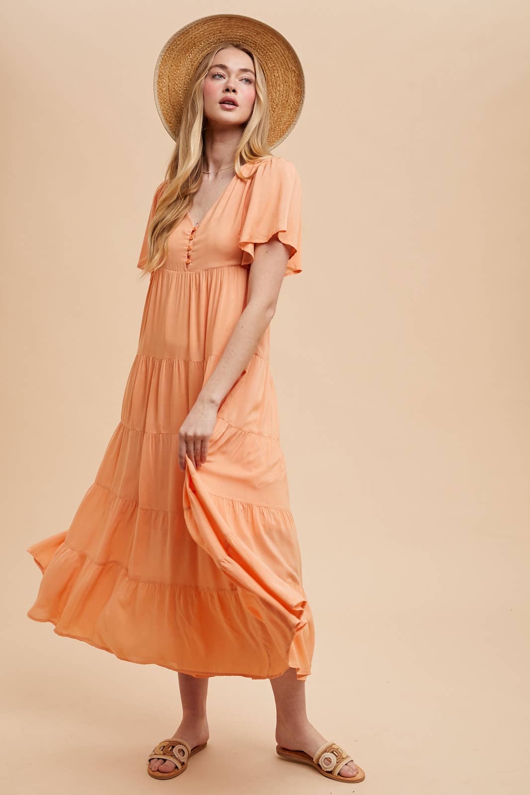 HENLEY TEE HAR BLONDEACCENTER, RULLEDE KORTE ÆRMER OG KNAP FORAN.