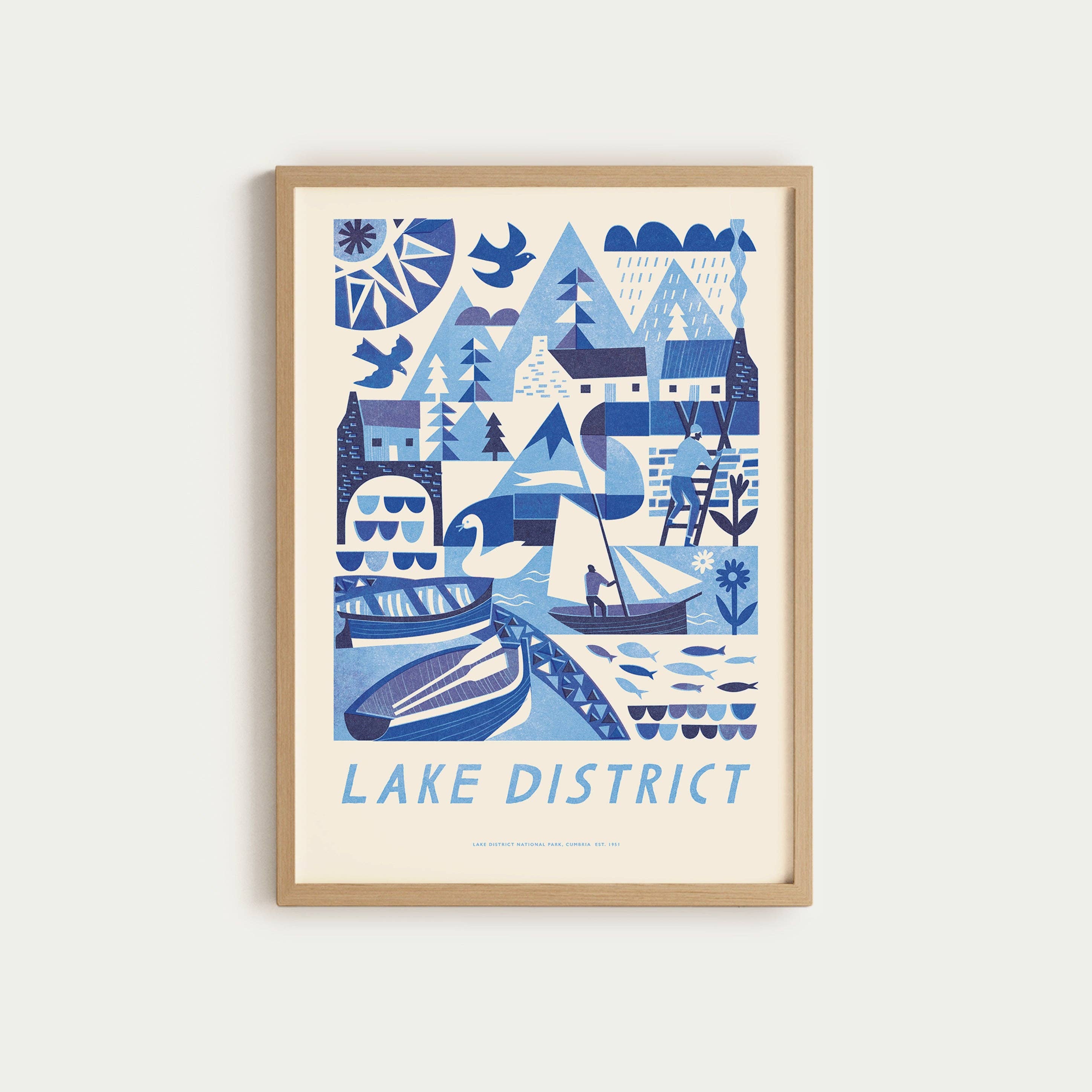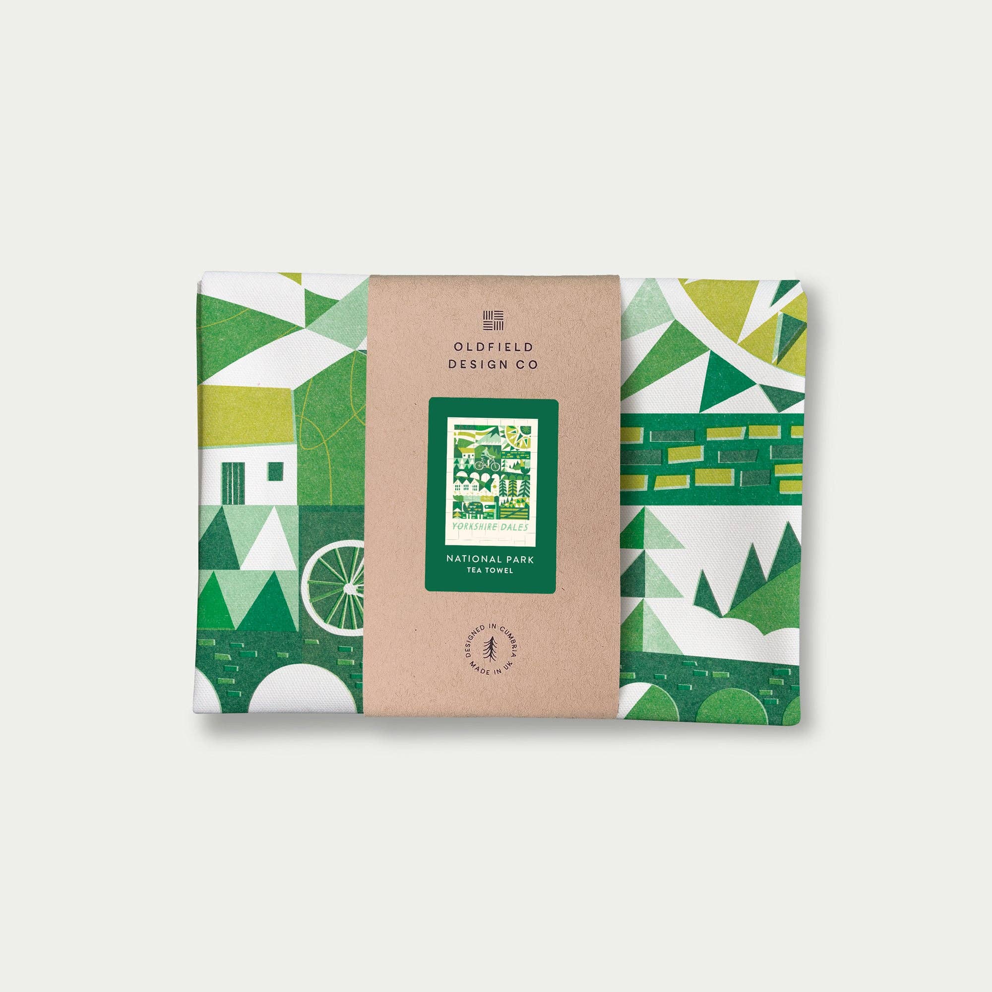 Et viskestykke trykt med en abstrakt illustration af Lake District af Oldfield Design Co. Vores populære tryk er nu tilgængelige som viskestykker! Trykt i Storbritannien på et højkvalitets, tykt bomuldslærred, fejrer disse viskestykker den naturlige skønhed og vartegnene i Storbritanniens nationalparker. Uanset om de bruges derhjemme eller på eventyr i autocamperen, er de en perfekt, praktisk gave. For pæne til at bruge? Vores 48 cm magnetiske trærammer er den perfekte størrelse til at vise dit viskestykke som en dekorativ vægophængning. Denne vare leveres foldet og pakket med et mærket Kraft-papirbånd, hvilket gør det til et fuldstændig plastfrit produkt, alt designet og fremstillet i Storbritannien. Omtrentlige størrelse 48 cm x 70 cm. Maskinvask ved 30 grader og tørretumbles ved lav varme. Leveret via Royal Mail.