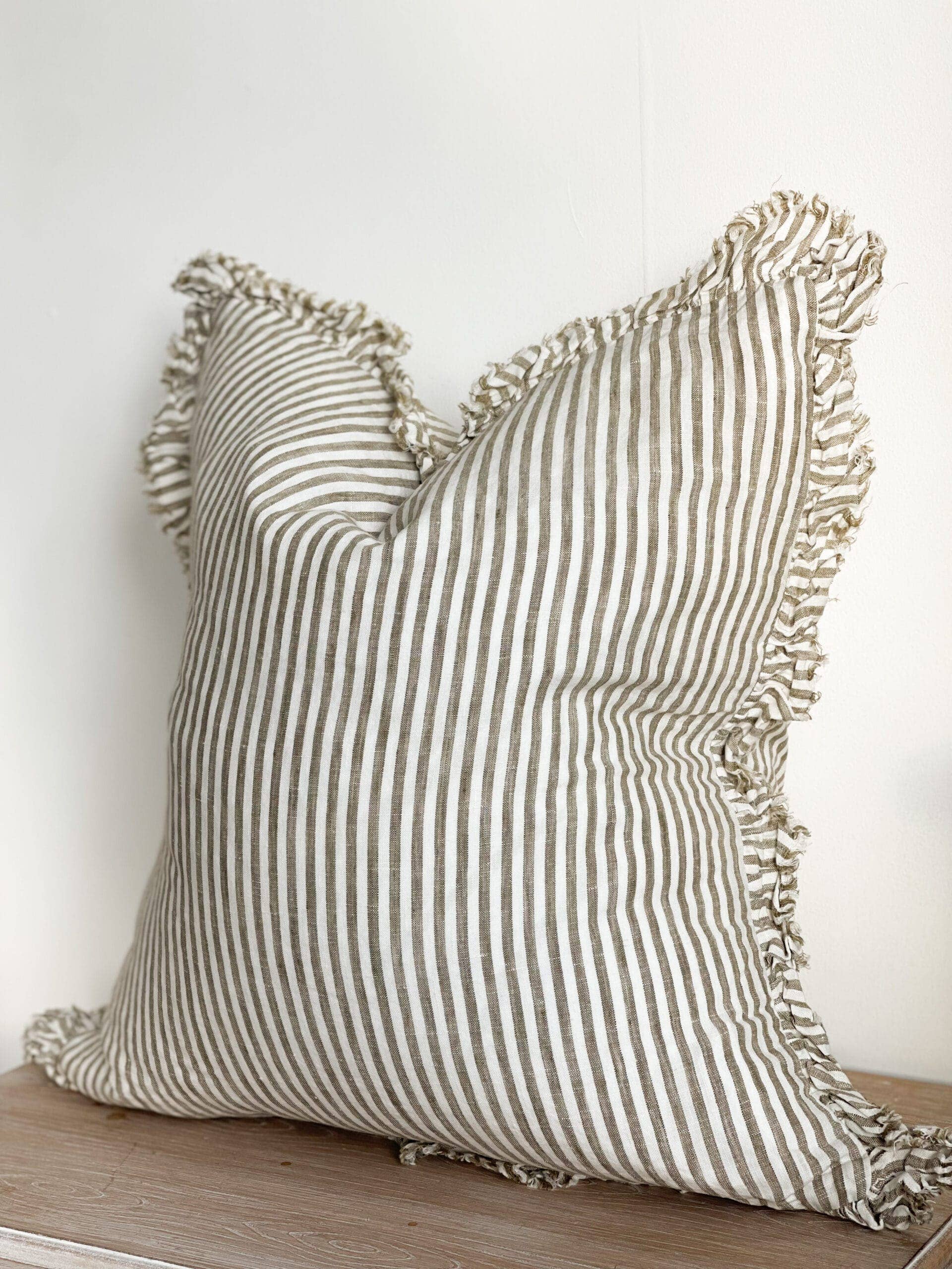 Esmee hørpudebetræk 45 × 45 - flosset kant tikkende stribe