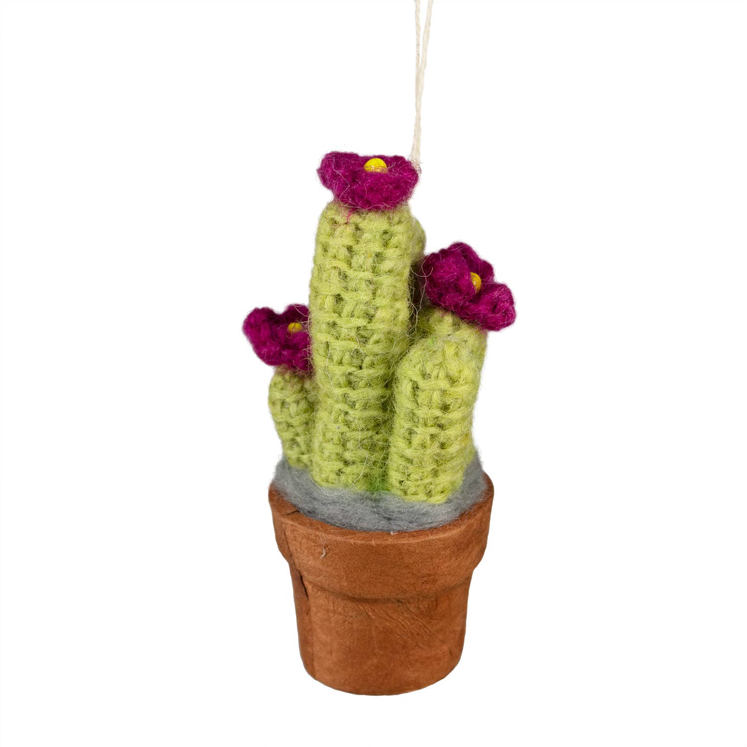 Tilføjelse af denne lille drink vand til din indkøbskurv vil virkelig holde din butik ser skarp! Den håndfiltede kaktus, dekoreret med farverige perler, er sat i en mini øko-papir pot, alle håndlavet i Nepal af dygtige håndværkere. Et festligt 'Fair Trade Home & Garden' tag hænger fra en 3 „hængende løkke. Lavet udelukkende til DZi Håndlavet, medlem Fair Trade Federation. 4.5 „h x 1.75" dia.