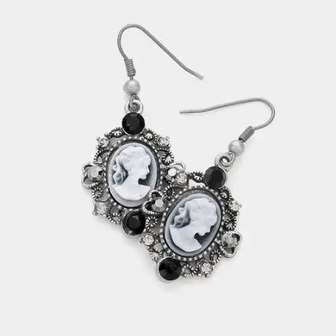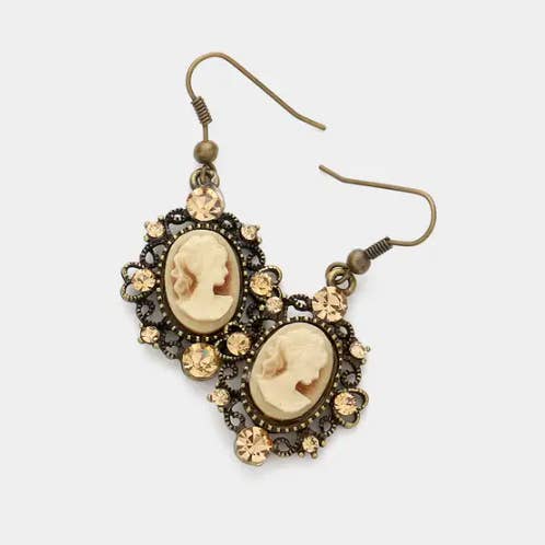 Krystal-accentuerede vintage cameo dråbeøreringe