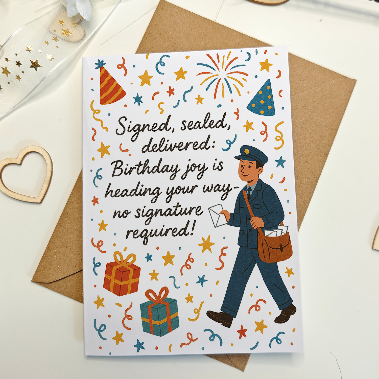 Tak Lærer Kort – "Du er en Vigtig Del af Min Historie" Regnbue Design Fejr de fantastiske undervisere, der har hjulpet med at forme dit år, med dette farverige tak lærer kort. Med en glædesfyldt regnbue, hjerter og stjerner, bærer dette kort en rørende besked: "Tak fordi du er en vigtig del af min historie." Trykt på tykt 300gsm premium karton, er dette A6 kort blankt indeni til din egen betænksomme besked. Det leveres med en kraft konvolut og er designet og trykt i Irland med omhu. 📌 Detaljer: ✔ A6 Størrelse (148 x 105 mm) ✔ Trykt på premium 300 gsm karton ✔ Farverig illustration med fødselsdagselementer ✔ Blank indeni til personlig besked ✔ Inkluderer en kraft konvolut ✔ Trykt og pakket i Irland