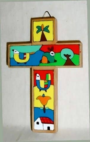 Lavet af håndværkskooperativer i La Palma, El Salvador. Smukke 127C Cross-La Palma motiver-lille (6 „x 3¾“) malet på træ. Hvert kors er et unikt stykke med samme grundlæggende design i forskellige farver.