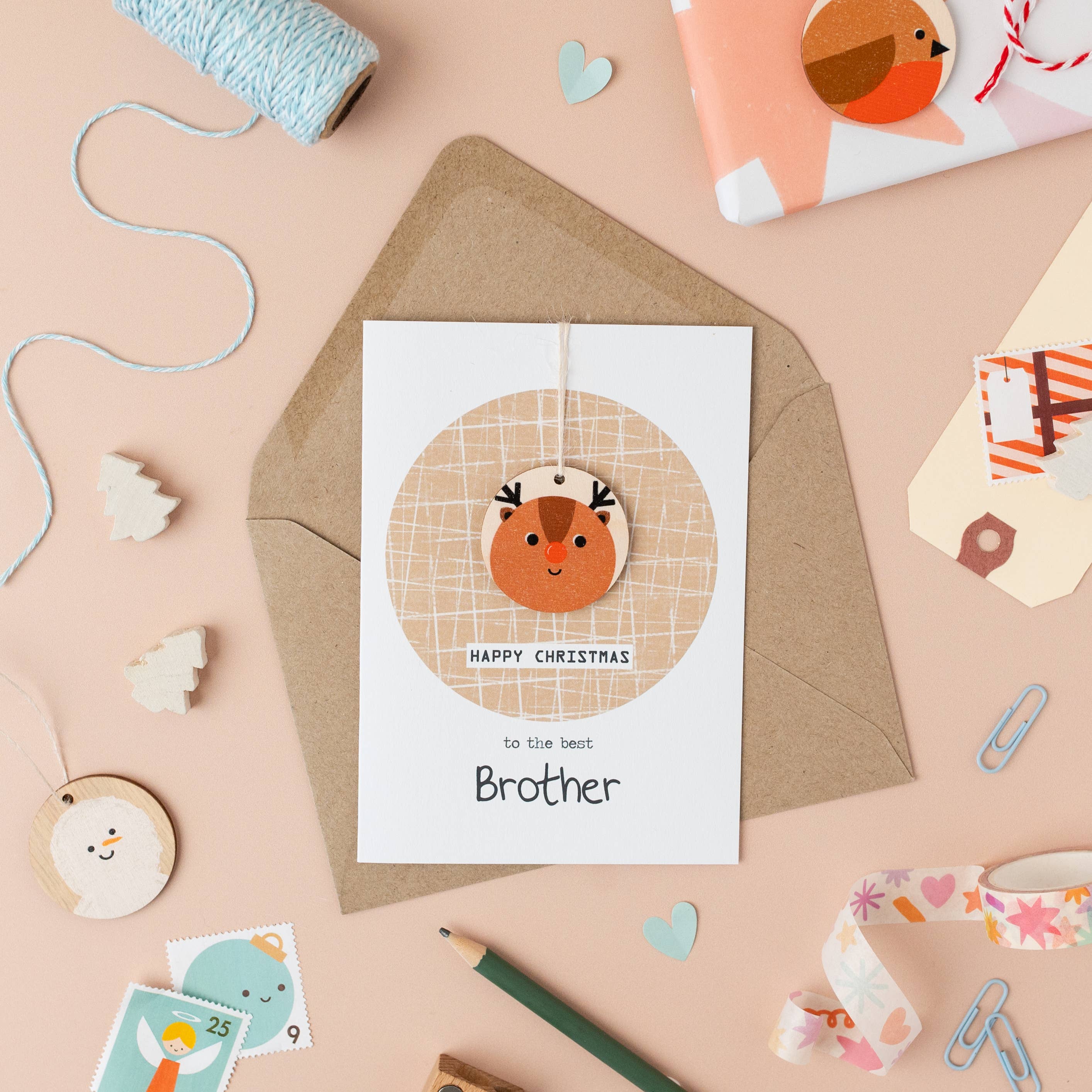 Et smukt julekort til din mand udsmykket med en træhjort. Et dejligt specialkort til at sende denne jul. Valgmulighederne for dette kort omfatter, Mand, Kæreste og Forlovede. Trykt på A6 genanvendt hvidt kort. Inkluderer en genanvendt nippet brun kraftkuvert. Træformer er lavet i Storbritannien fra bæredygtigt birketræ. Blank inde til din egen besked.