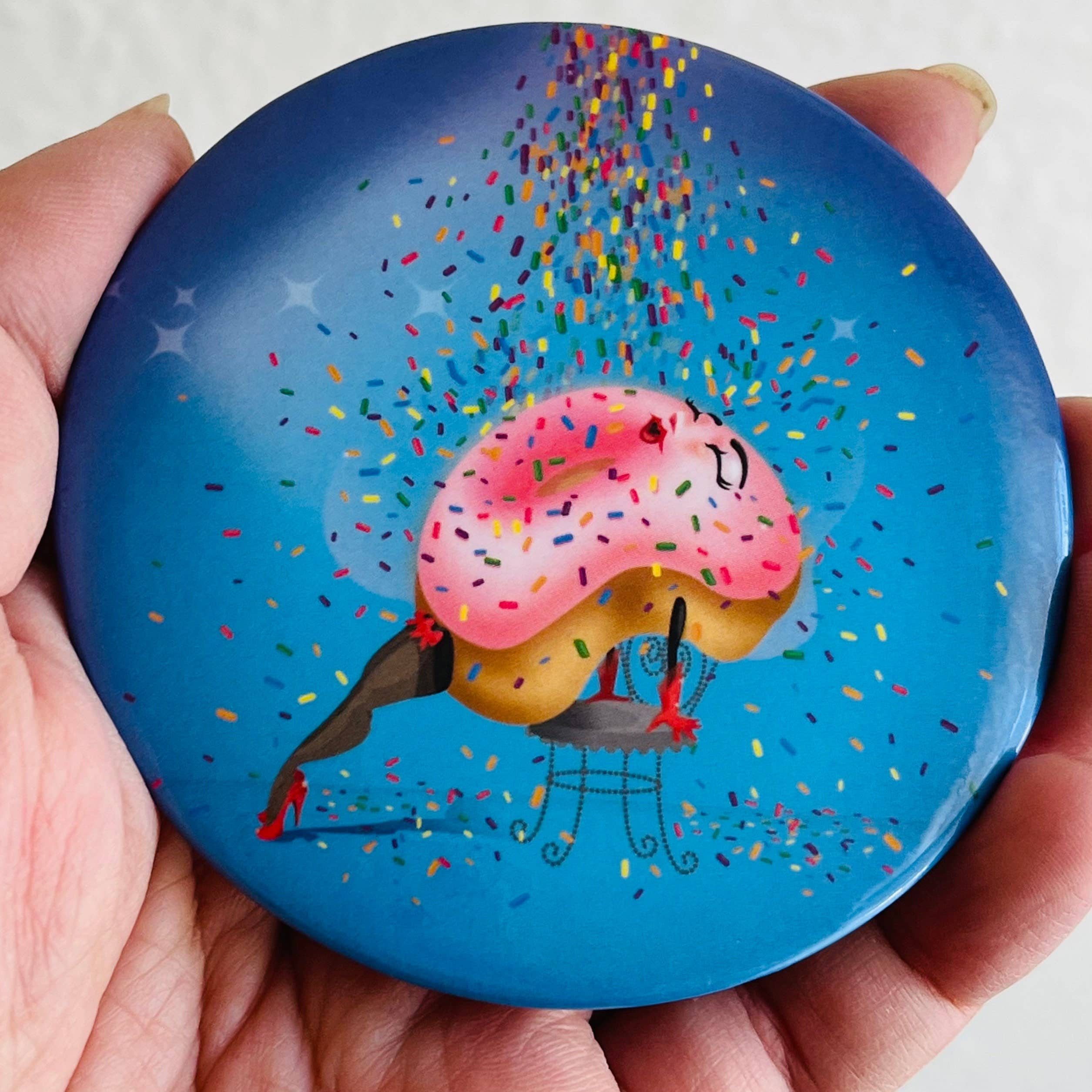 Denne flødemagnet vil helt sikkert være et fremragende tilbehør til dit køkken! Magneten måler 3 tommer. Den er udstyret med en magnet på bagsiden og klar til at sætte på dit køleskab eller noget metal. En original illustration af Kelly fra Kitschy Delish!
