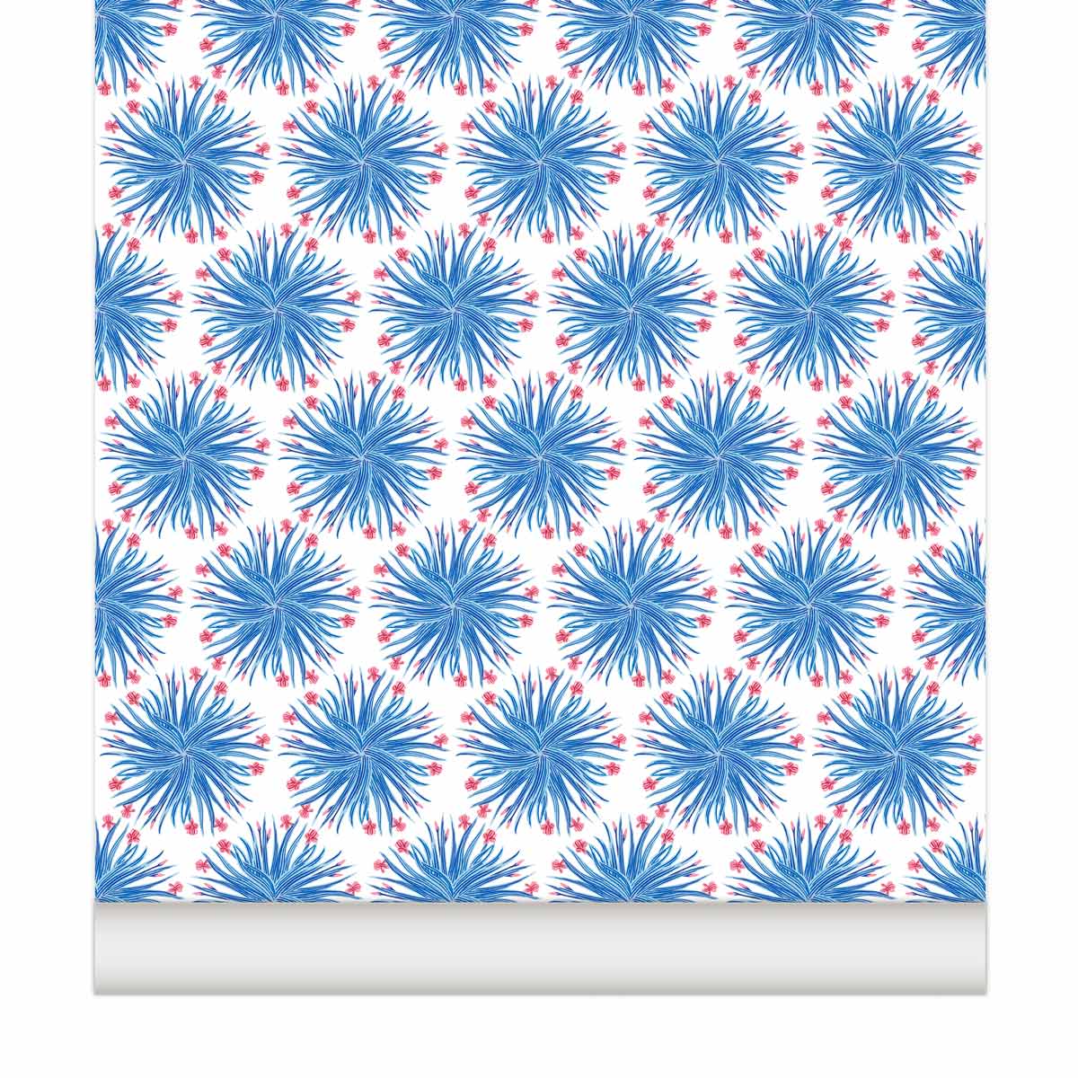 Hermosa Pink & Turkis tapet. Hermosa oversættes til 'smuk' på spansk, og det er det virkelig! Hermosa er en helt ny version af vores signatur"tree-of-life“ -prints. En tofarvet klassiker. Inspireret af indiske motiver i paisley-stil, men kombinerer dem med blomster- og frugtemblemer fundet i Costa Rica. Farven Pink og Turkis fremkalder en smuk og pastelfarvet charme. De to nuancer balancerer perfekt, og farverne skaber deres egen energi, der tilsyneladende kommer ud af papiret. Den lyserøde baggrund er en ægte lyserød nuance, der komplimenterer de blå forgrundstoner. Turkis er inspireret af den halvædelsten, der åndeligt fremmer åbenhed, kommunikation og selvudfoldelse. En rulle er 10 meter lang og 52 cm bred (5,2 m kvadratisk dækning) FSC certificeret. Trykt på bestilling i Storbritannien. Håndmalet af os i Cornwall. Ikke-vævet og indsæt væggen, så der kræves ingen tapetbord. Vores tapet er trykt på bestilling, så p