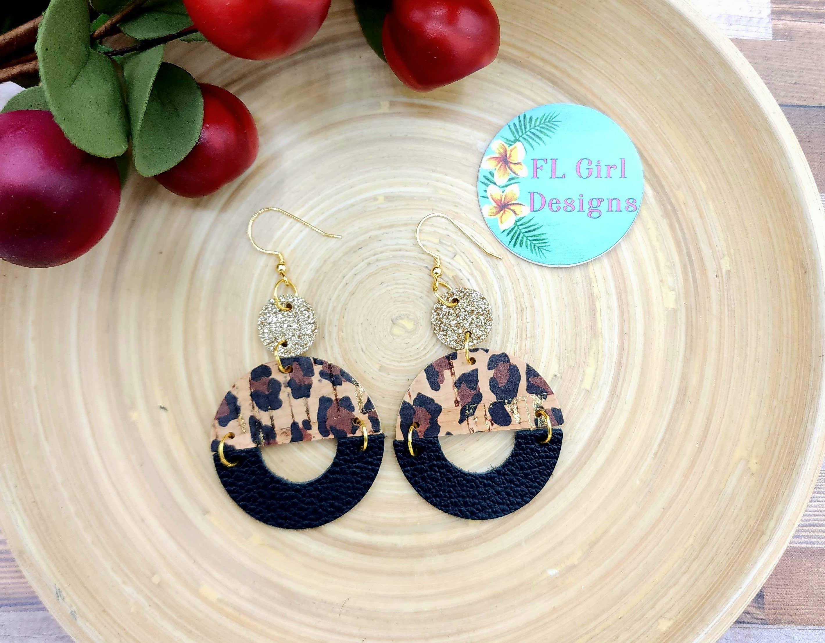 Baseball/softball flagermus krydset over hjemmepladen med en baseball/softball på ægte læder skåret i en cirkel og parret med en anden cirkel lavet af metallisk rødt ægte læder. Bagsiden er en ensfarvet ruskind. Øreringene er allergivenlige (nikkel- og blyfri) og er meget lette og behagelige at have på. Øreringene måler 1,5 „(baseret på læderstørrelse, men øreringen vil hænge lidt lavere). FL Girl Designs"ægte læderøreringe er ikke kun smukke udsagnsstykker, men er også lette og behagelige. Hvis det ikke var for alle de komplimenter, du vil modtage, ville du glemme, at du endda havde disse på. Vores øreringe er også alle håndlavede med omhyggelig opmærksomhed på detaljer.
