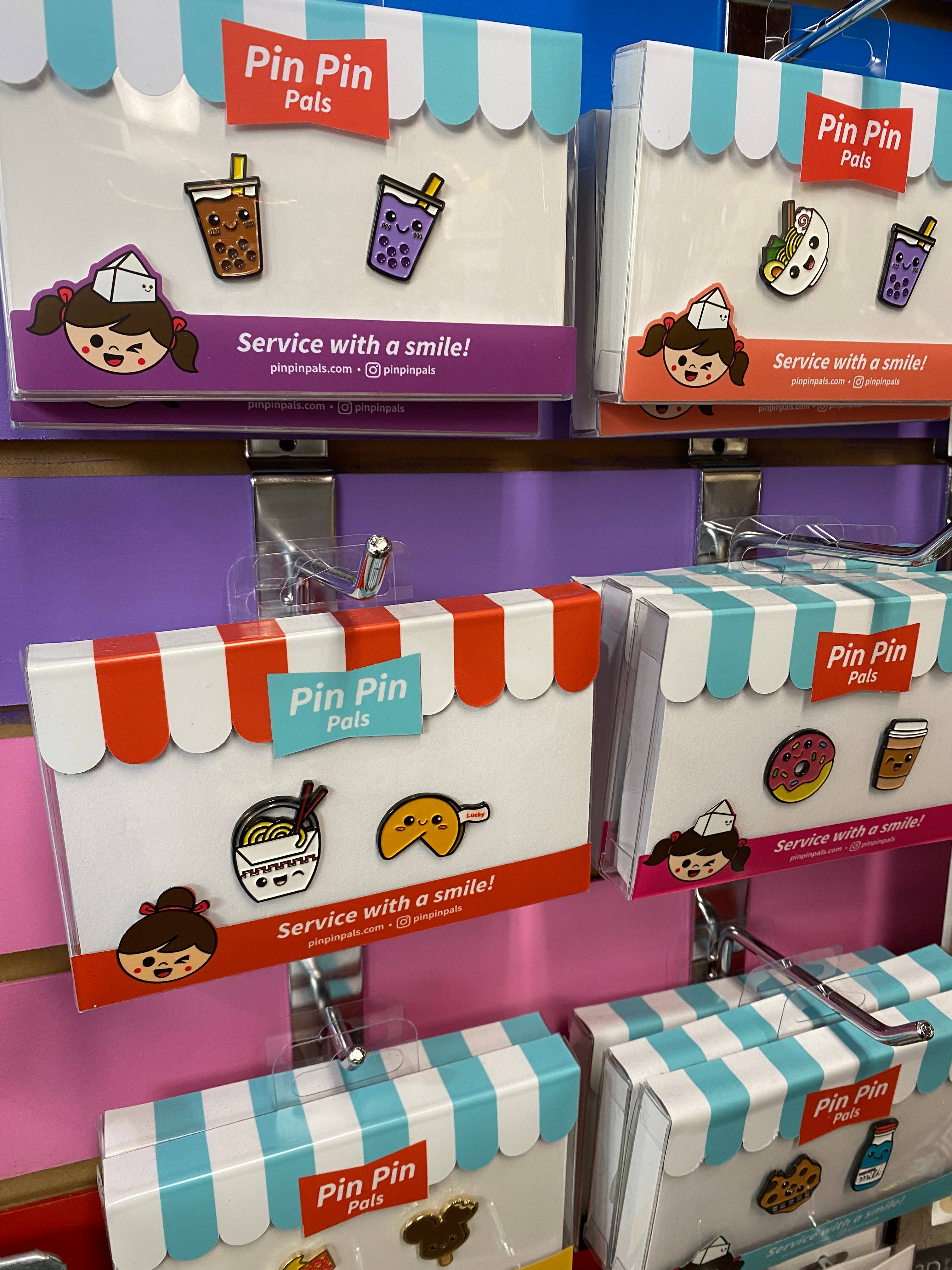 Pin Pin Pals har sådan nogle søde pins! Vi elsker emballagen, selvom den er lidt stor at sende. Men produkterne sælger, og de bliver hurtigt udsolgt! Skal afgive en ny ordre :)