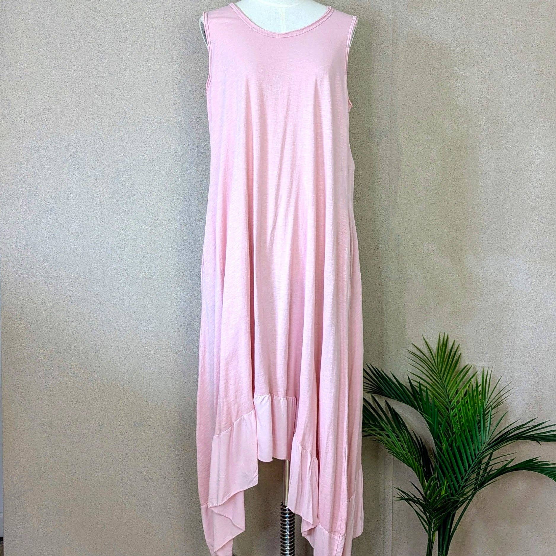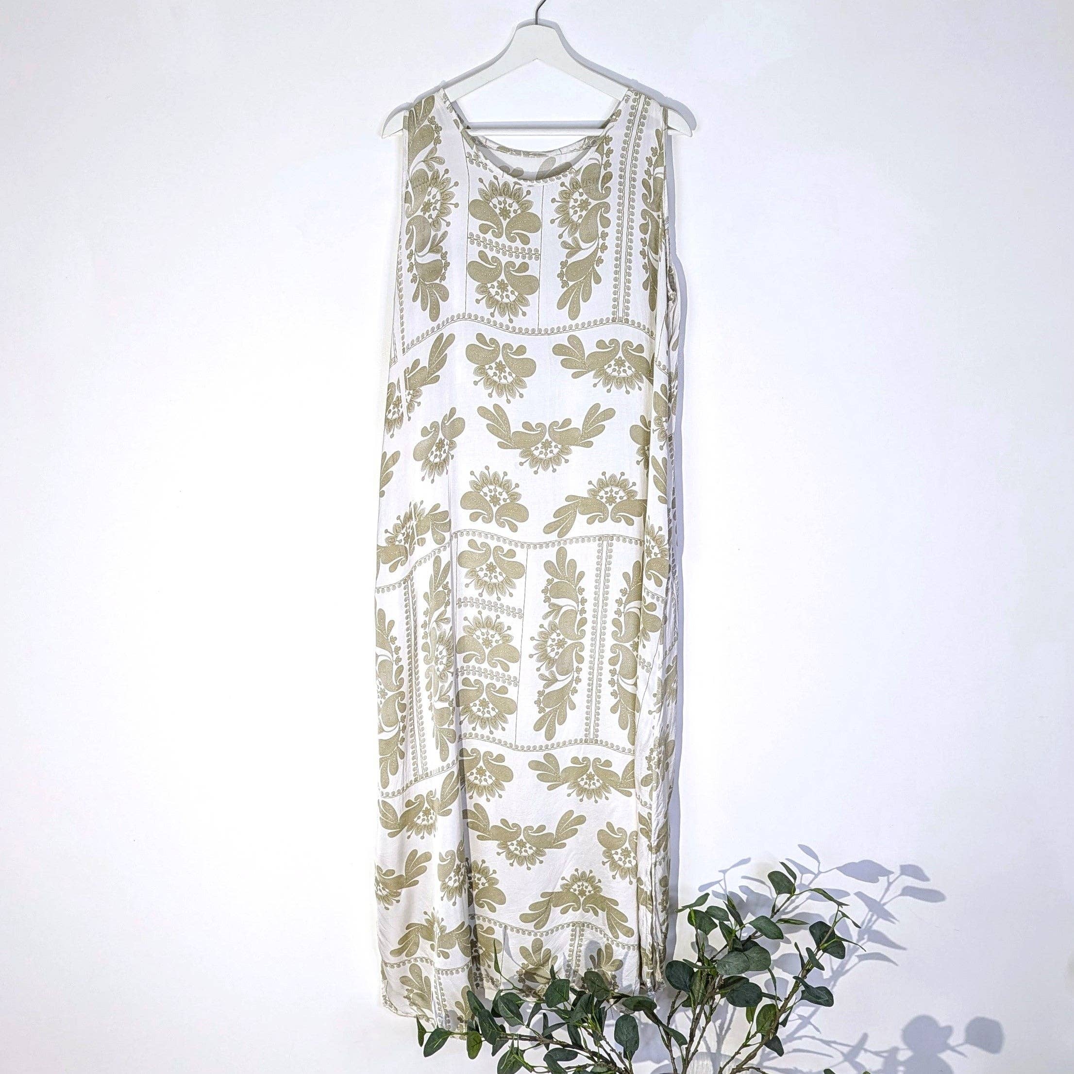 Lang batikfarvet stropløs viskose sommerkjole med neonelementer (M-L)