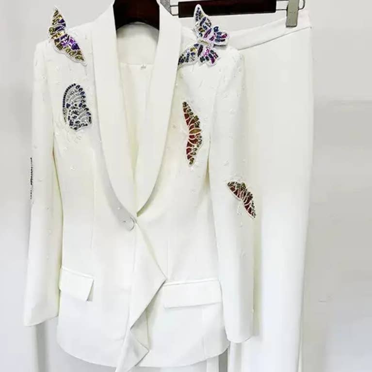 SET062(3) Chic blazer-sæt: elegant top og skræddersyede bukser