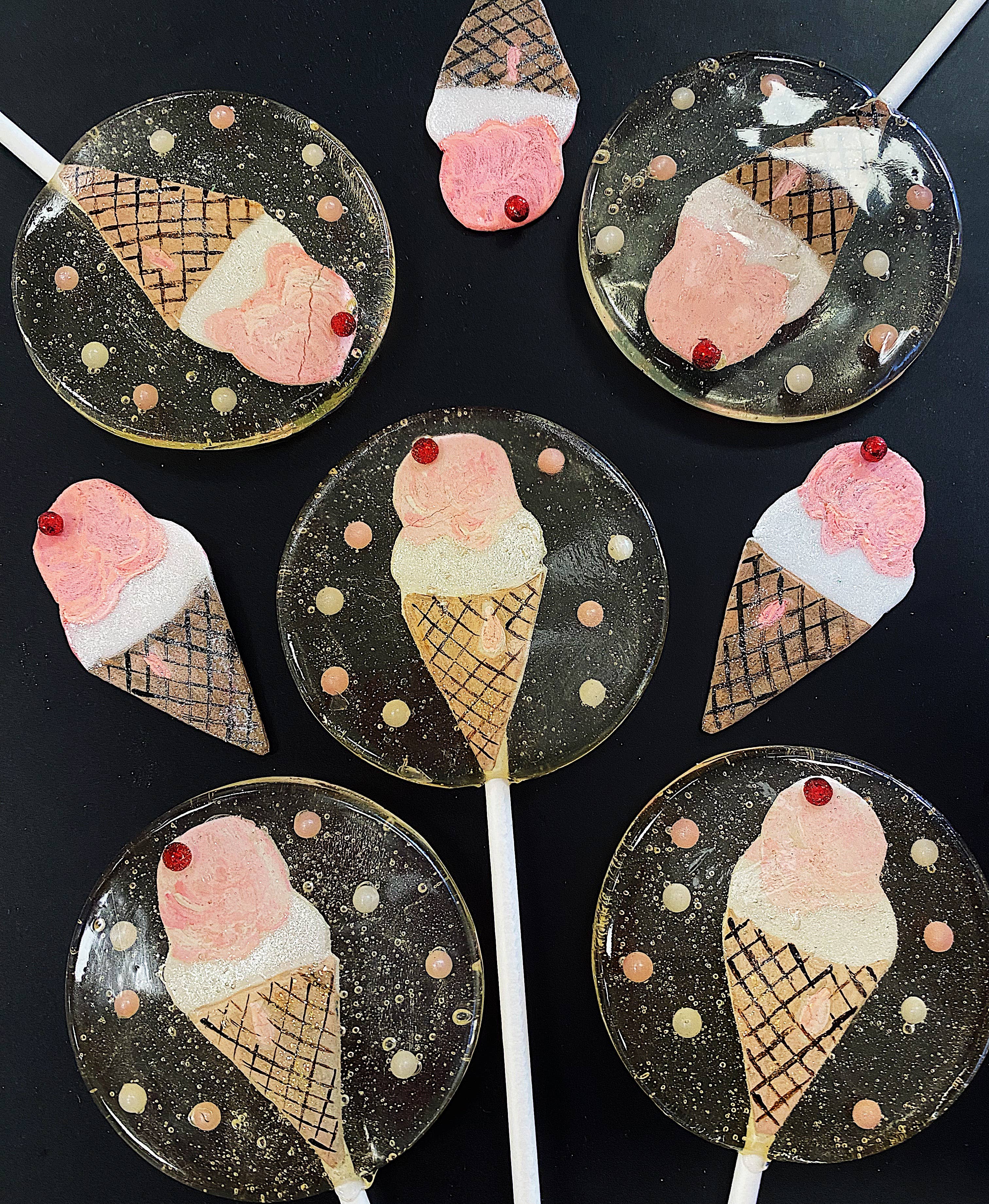 Disse slikkepinde var helt bedårende! Jeg var så begejstret for at modtage dem. De tager lidt længere tid at få end fra nogle andre butikker, men leveringstiden er tydeligt angivet, så jeg blev hverken forskrækket eller overrasket. Hvert sæt var godt pakket ind og sikkert, så intet blev beskadiget under transporten. Disse slikkepinde har en fantastisk størrelse, og detaljerne er helt utrolige! Jeg kan ikke vente på, at mine kunder får fat i dem!