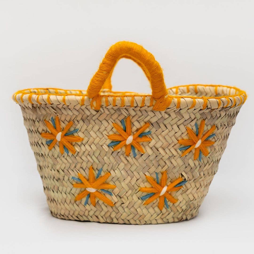 Stråstrandtasken er ikke kun et praktisk, men også et meget stilfuldt tilbehør til dine ture til en solrig og varm strand. Boho tasken er vævet af naturlige palmeblade med et elegant læderhåndtag. Denne håndvævede Boho taske kan skille sig ud fra mængden med sine unikke funktioner og give dig komfort når du bærer alle dine ejendele under din tur til stranden eller på en shoppingtur. Ideel til hverdagslige lejligheder såsom sommerstrand, swimmingpool, ferie, resorts, rejser, arbejde, shopping, date, polterabend hænge ud med venner, stranddag, ferierejser osv. • Størrelse (ca.): (40 cm Bredde) (27 cm - 30 cm Højde) Dimensionerne på denne halmkurvpose er kun en tilnærmelse, da alle kurve er håndlavede og derfor er helt unikke og meget lidt forskellige i størrelse. • Etisk og miljøvenligt alternativ til plastik købmandspose, håndvævet i Marokko vild palme „doumdoum“ Materialer: halm, palmeblade, ægte læder