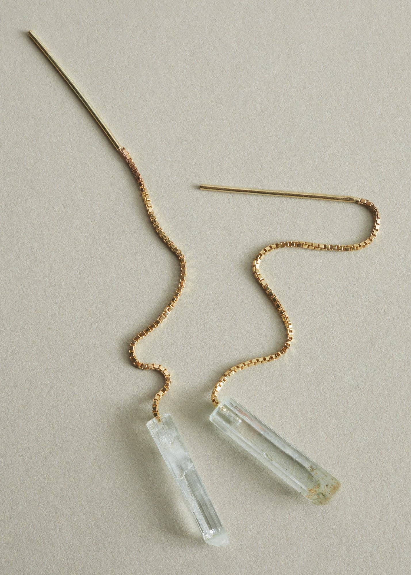 En gylden bue afsluttes med en fin, svingende kæde på øreringen. Denne delikate ørering, håndlavet i 14 karat ægte gult guld, er let, enkel og sofistikeret med dét særlige ekstra.