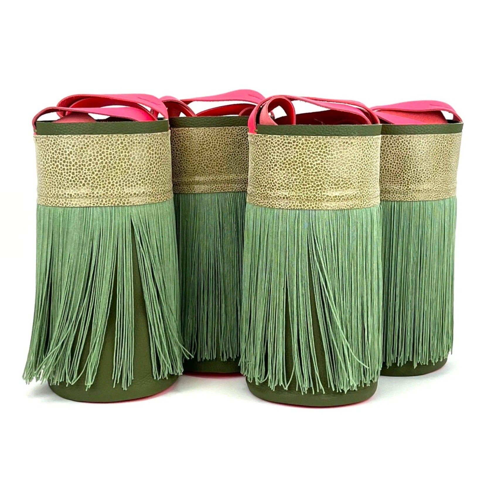 Minicubo model taske i rosa guld læder med en revnet effekt, ansøgning på kort hår og igen en rosa guld læder med en revnet effekt, base i champagne-farvet læder med en revnet effekt. Håndtaget er lavet af brunt læder. Håndlavet, eksklusivt design, ikke to er ens. Målinger: højde 28cm, diameter af basen 13cm, længde af håndtaget 98,5 cm ca. På trods af sine dimensioner, denne taske størrelse har en stor kapacitet. Det kan bæres krydset eller hænges på en skulder. „Ufuldkommenhed gør dem unikke.“