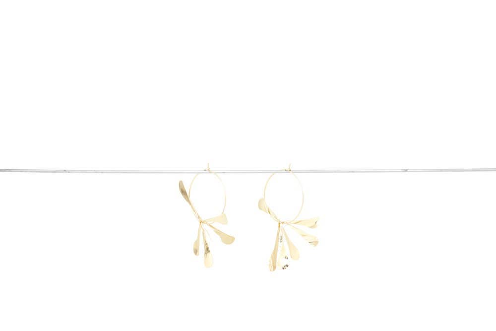 Vov den gyldne dug. For spirende alkymister. Nogle morgener stiger duggen op til ørerne, hvor der perler et par dråber guld. Belønninger for tågede morgenvækninger! Længde: 3,5 cm. Længde: 6,5 cm. Messing forgyldt med 24 karat guld. Håndlavet, hver del er unik og kan variere fra præsentationsmodellen.